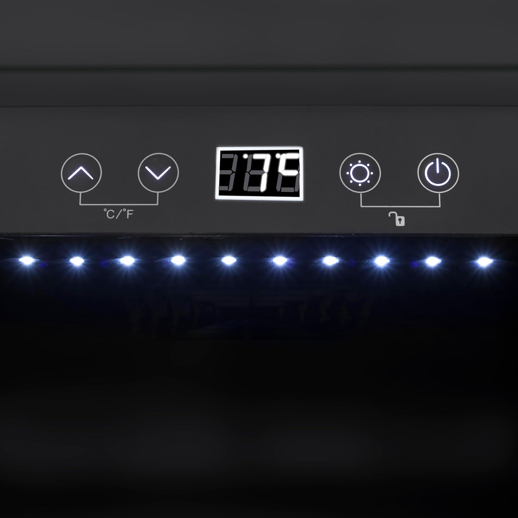 - 🍷 LED-INNENBELEUCHTUNG: Die zuschaltbare Beleuchtung verleiht dem Weinkühler ein sehr edles Aussehen. Besonders in nicht stark beleuchteten Umgebungen verbreitet die Beleuchtung ein tolles Ambiente.