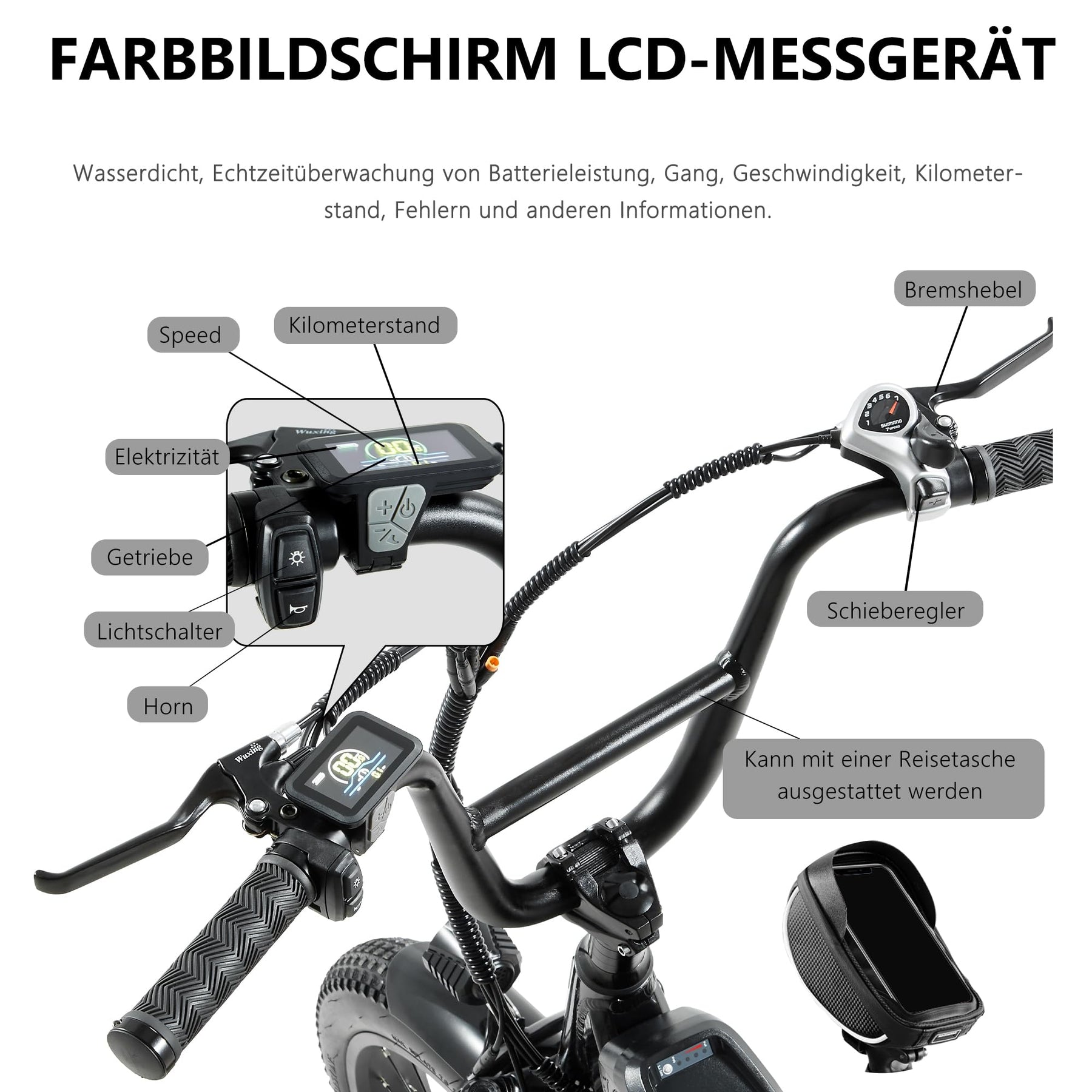 - ➡️BEQUEMES FAHREN: Bei der Entwicklung des 20 Zoll Elektro fahrrad wurde besonderer Wert auf den Fahrkomfort gelegt. So ist das R8SE mit einer gefederten Vorderradgabel ausgestattet, die Vibrationen auf der Straße effektiv reduziert. Die Sattelstütze ist etwa 60 cm vom Lenker entfernt, und die höhenverstellbare Sattelstütze ermöglicht es Ihnen jederzeit, die bequemste Fahrposition zu finden.