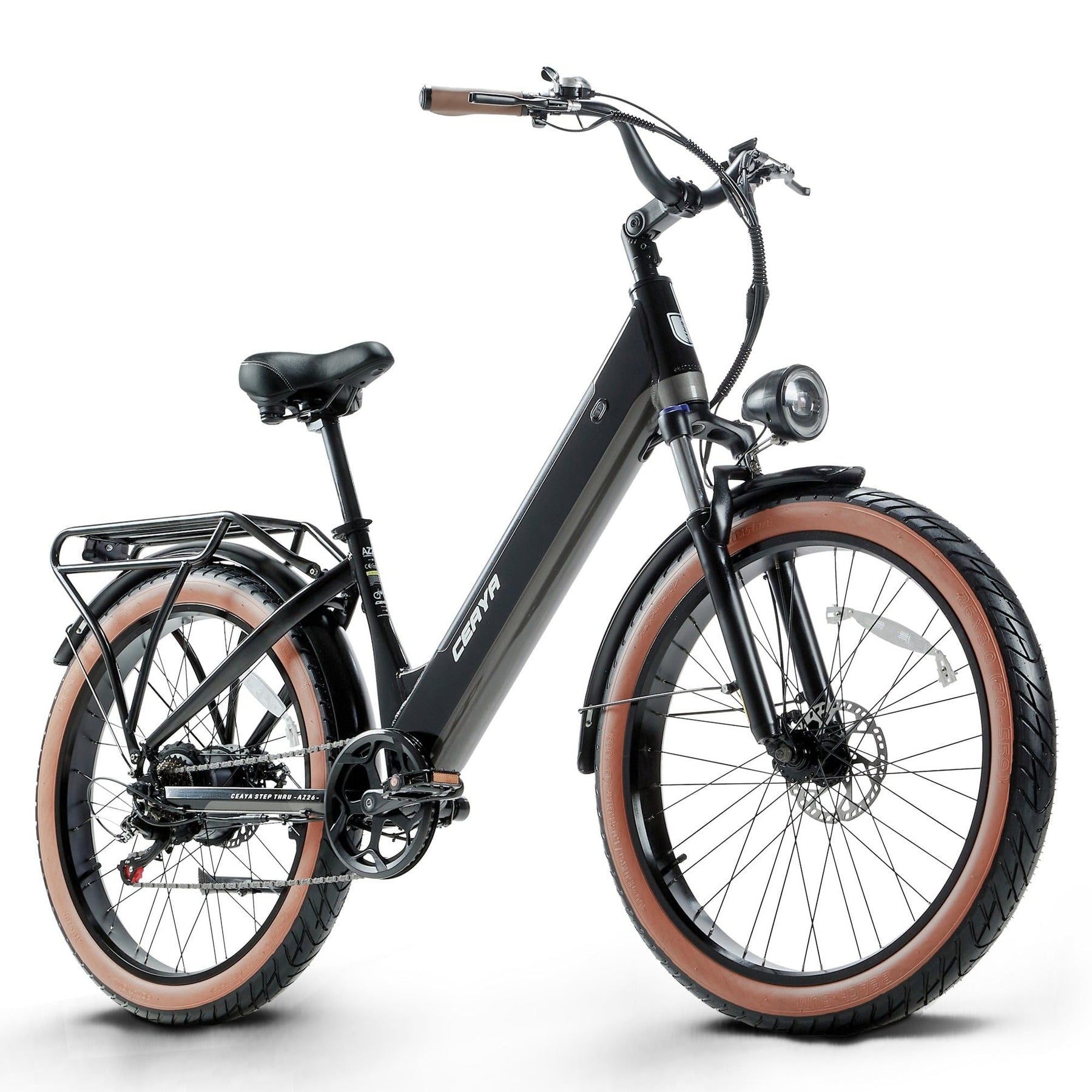 • Step thru-ebike:AZ26 haltbarer Rahmen aus Aluminiumlegierung mit glänzender Lackierung, kombiniert mit 26*3.0IN schwarzen und braunen farblich abgestimmten Reifen, gibt Ihnen ein neues auffälliges Gefühl, CEAYA ebike ist nicht mehr nur ein Pendlerwerkzeug, es ist auch Ihr modisches Element. Die Rahmenstruktur des Mountainbikes macht es bequemer, auf das Fahrrad auf- und abzusteigen, geeignet für eine Vielzahl von Menschen, wie Frauen, die gerne Röcke tragen, ältere Menschen, usw. Maxload 150kg