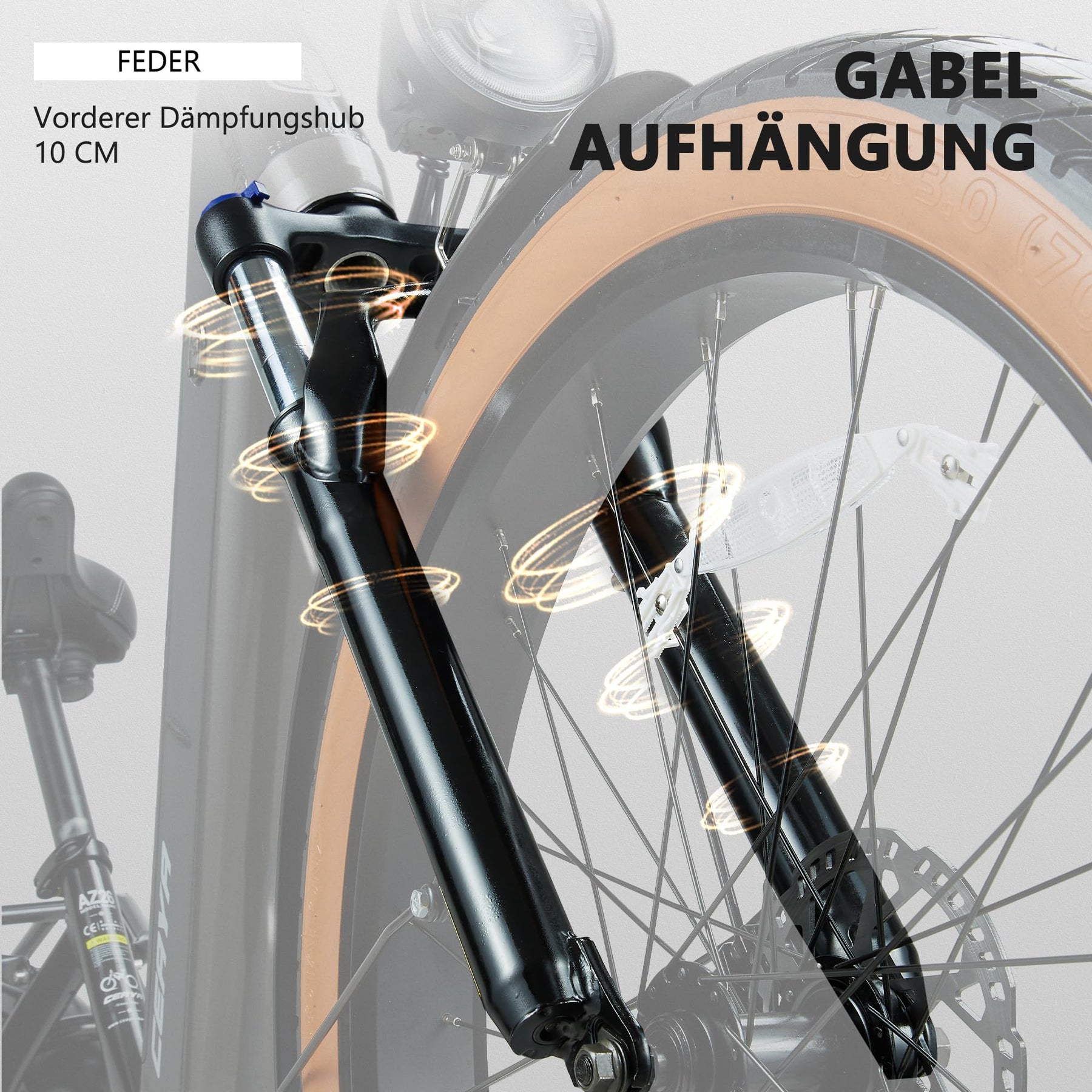 • Vielseitig einsetzbar: Das Elektro-Stadtfahrrad AZ26 verfügt über Seilzugbremsen mit 160-mm-Scheiben, Gabeln mit On/Off-Stoßdämpferfunktion, 3,0 Zoll breite Reifen, die bei verschiedenen Straßenverhältnissen wie Sand, Schnee und Liegeplätzen usw. verwendet werden können. Der Gepäckträger kann bis zu 50 kg tragen, was bedeutet, dass es ein City-E-Bike oder ein Cargo-E-Bike sein kann.