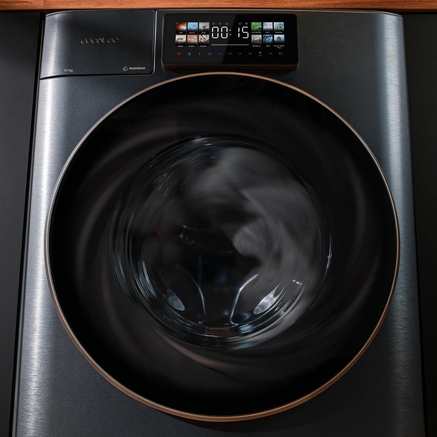 - OnSmart: Intelligentes Waschen, das automatisch das ideale Programm mit nur einem Knopfdruck auswählt. Fuzzy Logic: Erkennt die Waschladung durch Sensoren und optimiert den Wasserstand sowie die Waschzeit. Smooth Wash: Dank des ESC-Systems kalibriert die Trommel automatisch, um das Waschen und Schleudern in einen ultra-leisen Modus zu versetzen, sodass es auch nachts verwendet werden kann.