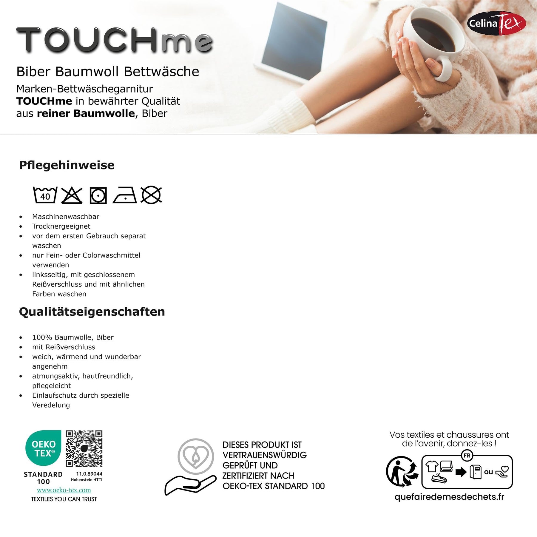 - Unsere traumhafte Bettwarenserie Touchme ist eine kuschelige weiche Marken Garnitur aus 100% Baumwolle, in warmer feiner Biber Qualität mit hohem Kuschelfaktor und einem Tuchgewicht von ca. 150g/qm