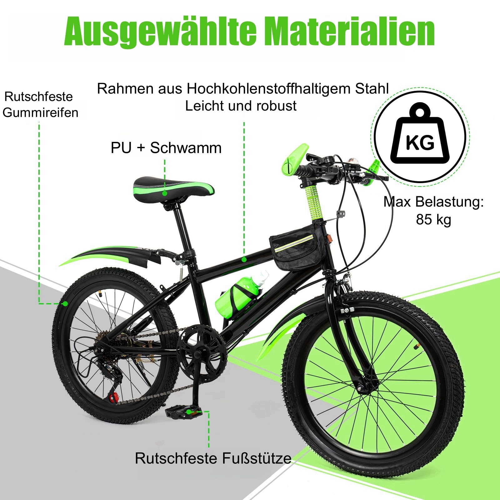 - 【7-Gang-Schaltung für jede Umgebung】 - Mit der 7-Gang-Schaltung dieses fahrrad 20 zoll jungen können Kinder die Geschwindigkeit an ihre Bedürfnisse und verschiedene Terrains anpassen. Die flexible und präzise Gangschaltung sorgt für ein reibungsloses Fahrerlebnis, egal ob auf der Straße oder im Gelände.