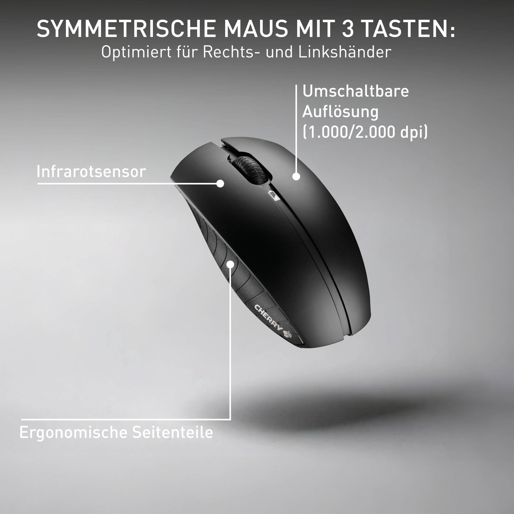 Einzelheiten: Hochwertige deutsche Ingenieurskunst trifft auf herausragendes Design - das ist CHERRY. Bereits 1953 begann die Fertigung der ersten Mikroschalter im Keller eines Restaurants in Illinois. 20 Jahre später wurden die ersten Keyboards gebaut - somit ist CHERRY der älteste Hersteller von Computertastaturen. 1983 startete die Produktion der MX-Switches, die mittlerweile milliardenfach in Millionen Tastaturen rund um den Globus zum Einsatz kommen. Jahrzehntelange Erfahrung, Leidenschaft und Tradition machen die Marke mit der Kirsche zu dem, wofür sie heute steht: Qualitätsprodukte, die in Deutschland entworfen werden und sich an all diejenigen richten, die einen hohen Anspruch an Leistung, Design, Lebensdauer und Funktionalität ihrer Eingabegeräte haben.Anpassungsfähig und robust: Beim CHERRY B. UNLIMITED 3.0 profitieren Sie von hochwertigen, vorgeladenen NiMH-Akkus sowie einer störungsfreien, kabellosen 2,4 GHz Funktechnologie mit AES-128 Verschlüsselung. Die Auflösung der symmetrischen, kabellosen Maus lässt sich von 1000 dpi auf 2000 dpi umschalten. Durch die Lebensdauer von über 20 Mio. Betätigungen pro Taste, die Ladefunktion über USB-Kabel - auch während des laufenden Betriebs - und die dauerhaft abriebfeste Beschriftung ist dieses Desktop-Set für den professionellen Dauereinsatz konzipiert.