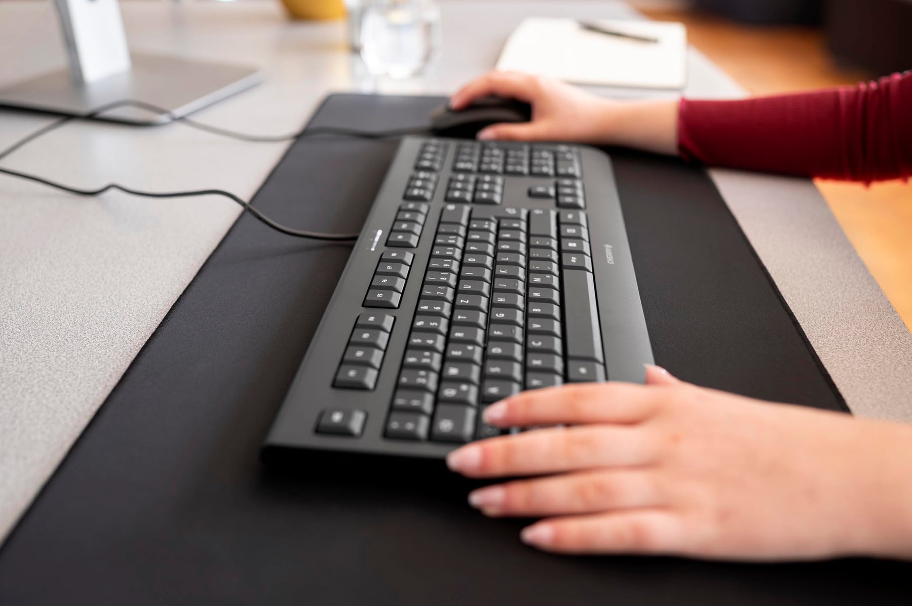 Einzelheiten: Hochwertige deutsche Ingenieurskunst trifft auf herausragendes Design - das ist CHERRY. Bereits 1953 begann die Fertigung der ersten Mikroschalter im Keller eines Restaurants in Illinois. 20 Jahre später wurden die ersten Keyboards gebaut - somit ist CHERRY der älteste Hersteller von Computertastaturen. 1983 startete die Produktion der MX-Switches, die mittlerweile milliardenfach in Millionen Tastaturen rund um den Globus zum Einsatz kommen. Jahrzehntelange Erfahrung, Leidenschaft und Tradition machen die Marke mit der Kirsche zu dem, wofür sie heute steht: Qualitätsprodukte, die in Deutschland entworfen werden und sich an all diejenigen richten, die einen hohen Anspruch an Leistung, Design, Lebensdauer und Funktionalität ihrer Eingabegeräte haben. CHERRY DC 2000 ist das grundsolide, kabelgebundene Maus- und Tastatur-Set mit einem hervorragenden Preis-Leistungs-Verhältnis. Die Tastatur besitzt ein flaches Design mit robusten und dauerhaft abriebfesten Tasten und 4 Hotkeys (Taschenrechner, E-Mail, Browser, Sleep-Modus) und 3 blau leuchtende Status-LEDs. Die Maus besitzt 3 Tasten und ein Scrollrad, eine Auflösung von 1.200 dpi und ein symmetrisches Design für Rechts- und Linkshänder. Es bietet höchsten Nutzerkomfort durch seine Ergonomie und die hochwertige Verarbeitung. Dieses Set ist universell, zuverlässig und optimiert für den professionellen Einsatz.