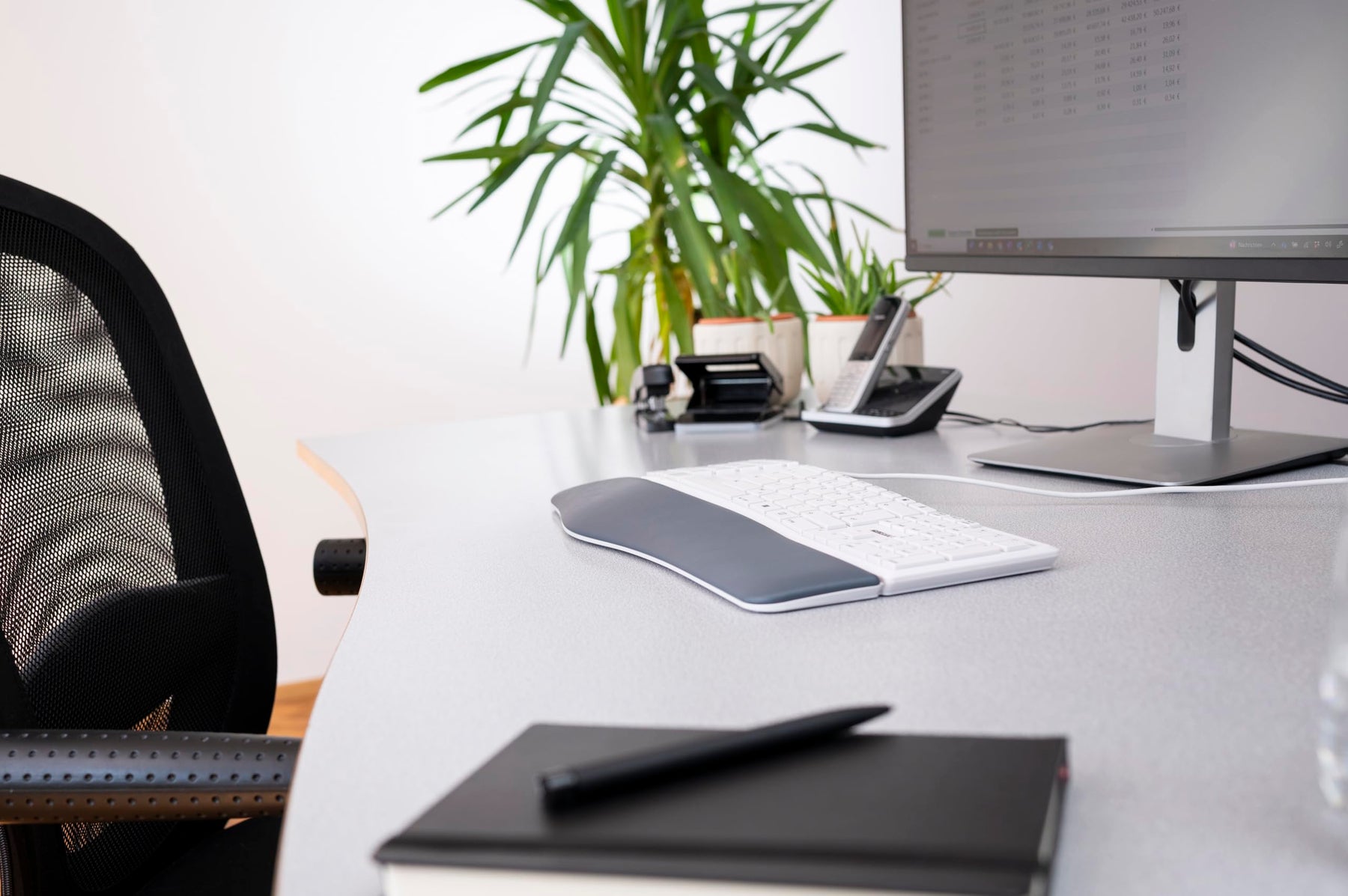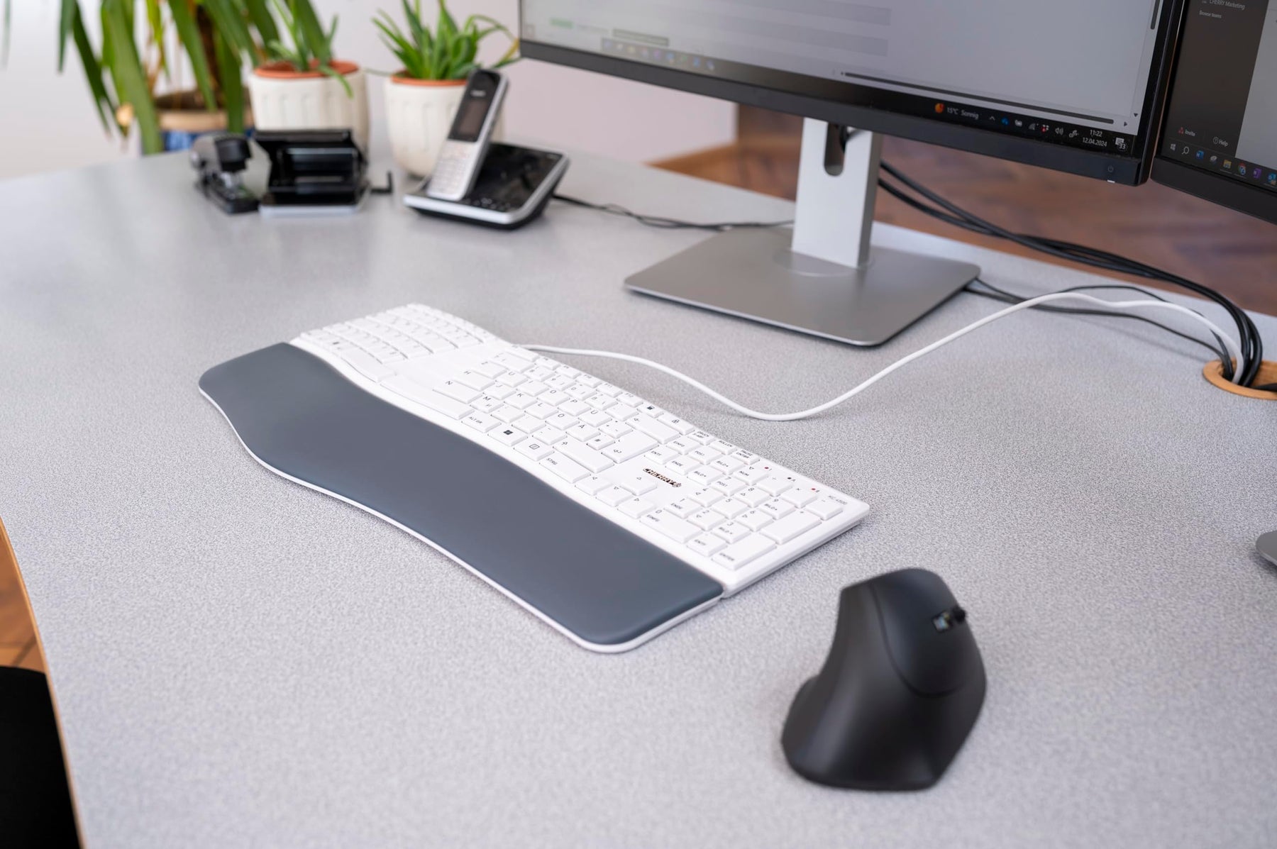 • Ergonomische Kabeltastatur mit geschwungenem Tastenfeld und Handauflage: Unterstützt eine natürlichere Körperhaltung und stressreduziertes Arbeiten am Computer