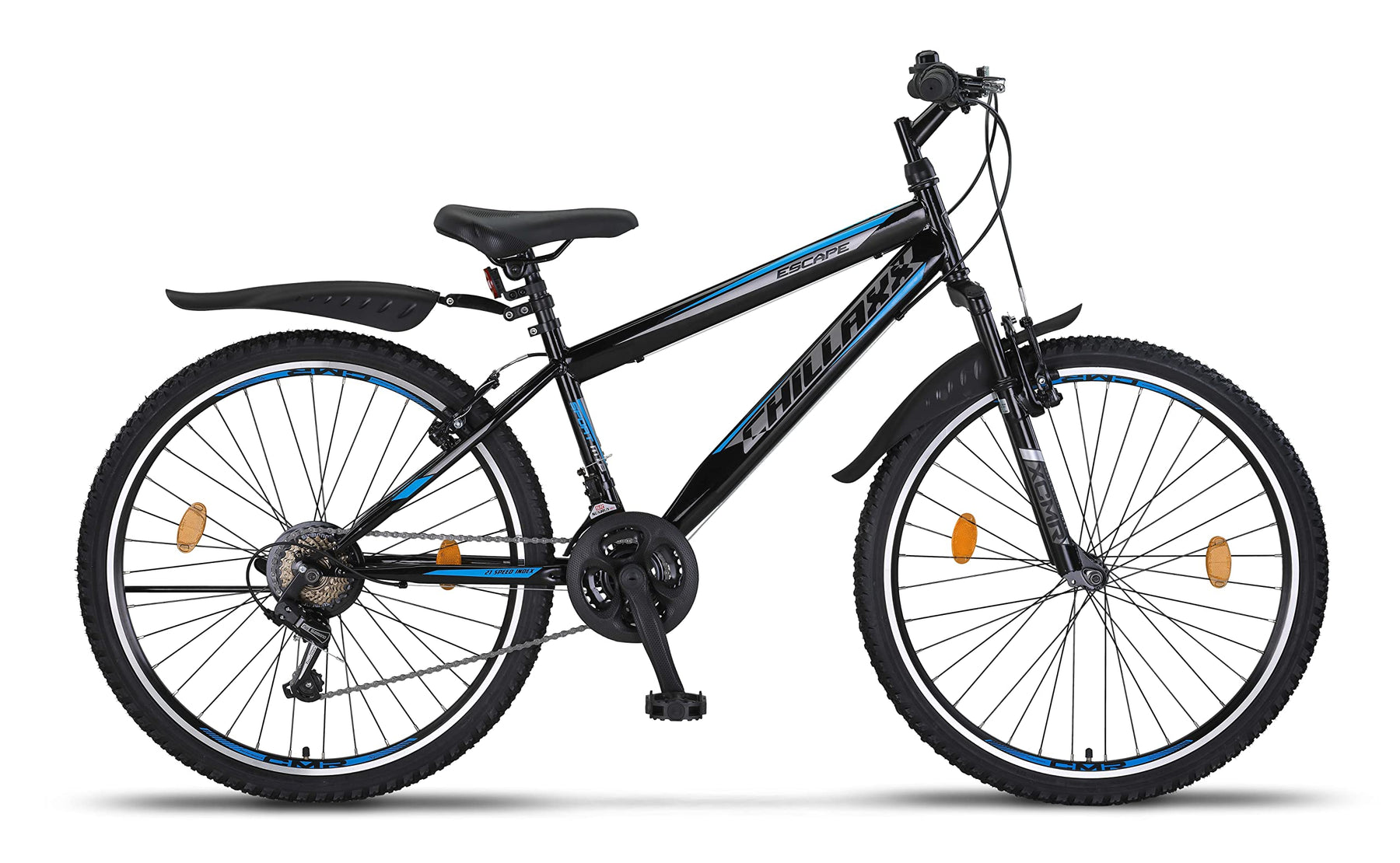 Chillaxx Bike Escape Premium Mountainbike in 24 und 26 Zoll Fahrrad für Mädchen Jungen Herren und Damen - 21 Gang Schaltung (26 Zoll, Schwarz-Blau V-Bremse)