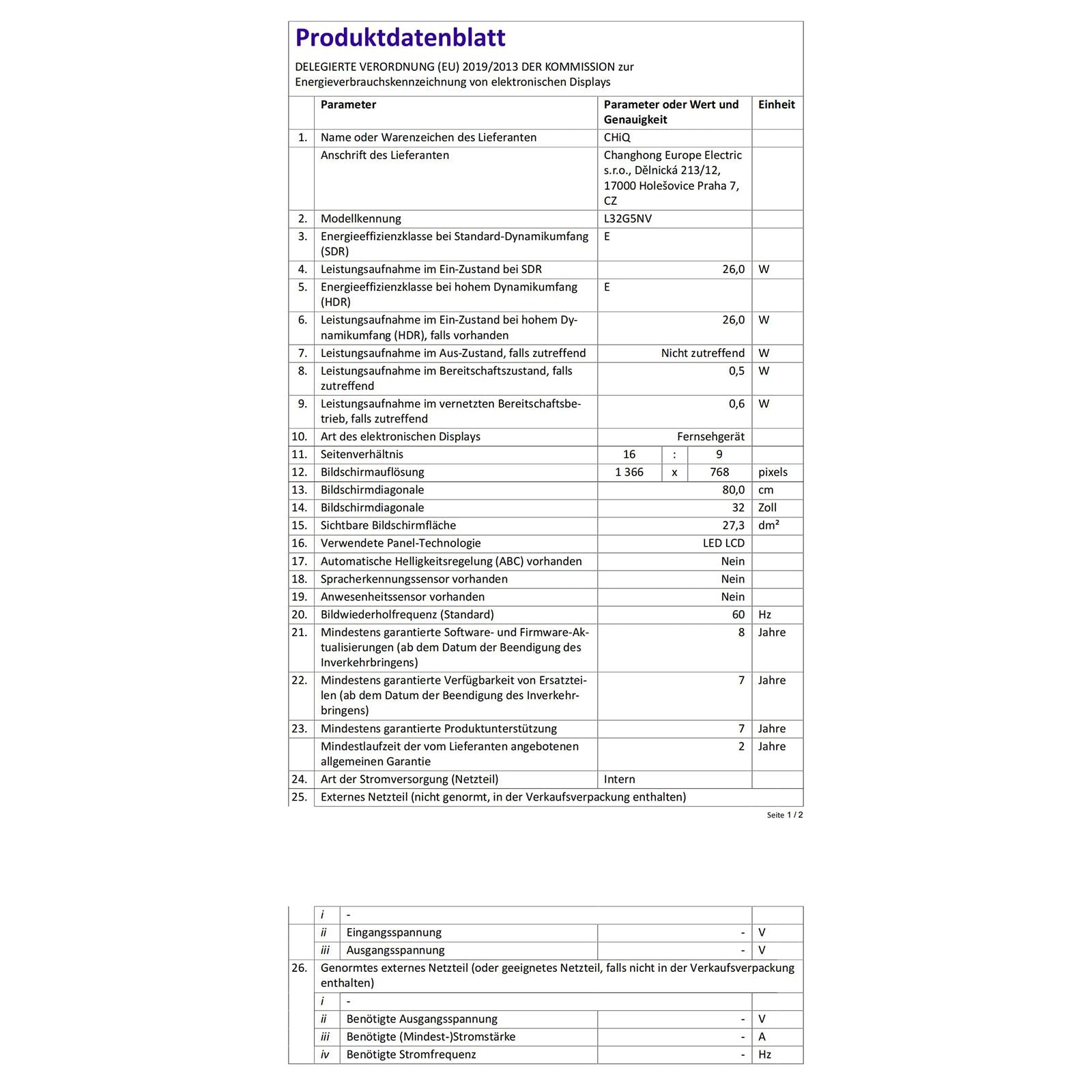 Modellnummer: L32G5NV