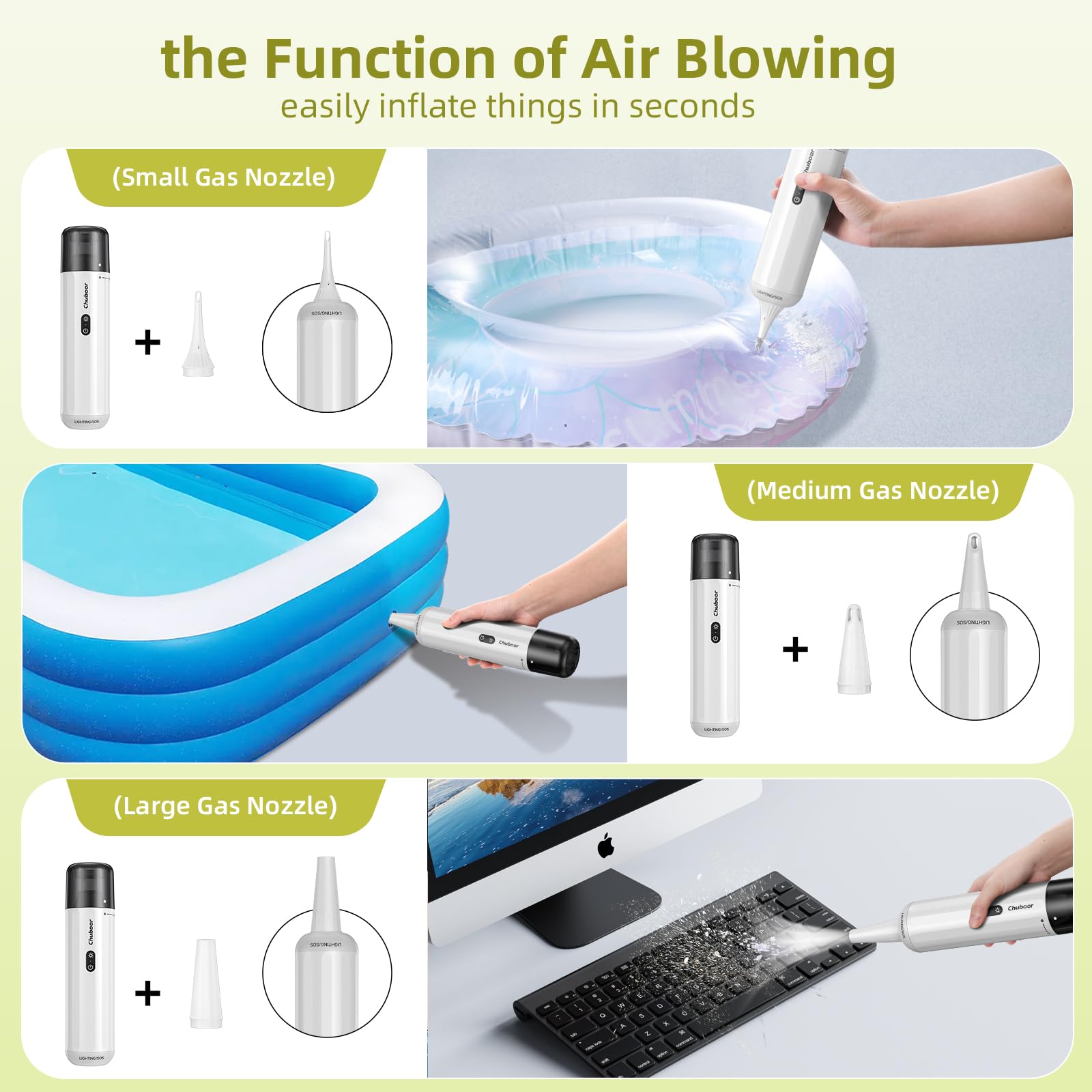 - 🌱【Vielfaches Zubehör und vielfältige Verwendungsmöglichkeiten】 Unser Autostaubsauger verfügt über eine Vielzahl von Zubehör für verschiedene Zwecke. Mit den kabellosen, wiederaufladbaren Staubsaugern können Sie nicht nur den Müll in der Tiefe effektiv reinigen, sondern auch den Schwimmring aufblasen und den Staubsaugerbeutel absaugen. Je mehr Funktionen, desto besser kann es den verschiedenen Bedürfnissen des Lebens gerecht werden!