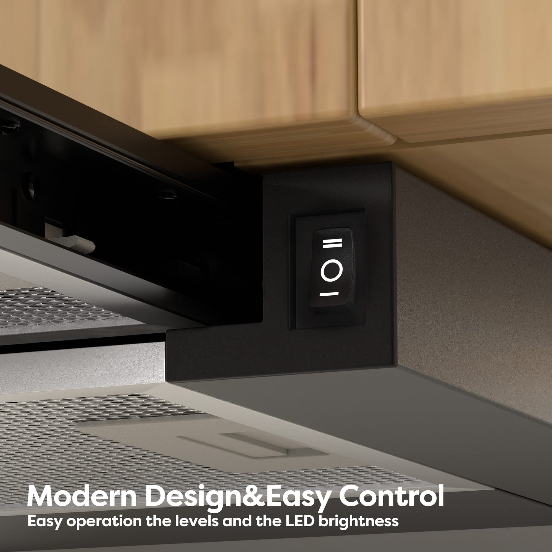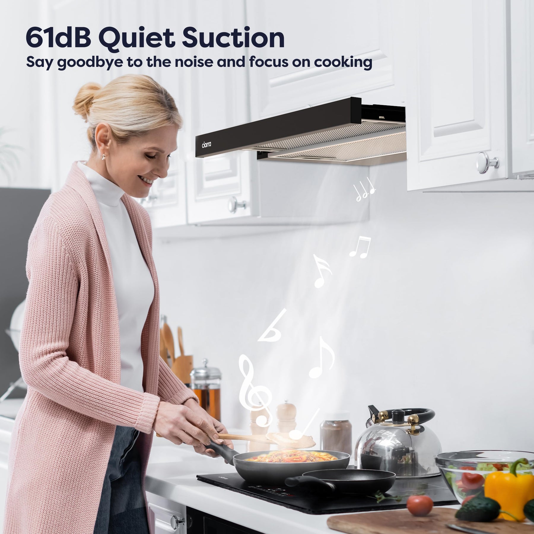 • PLATZSPARENDE FLACHSCHIRMHAUBE: 60cm breite Flachbildschirm-Dunstabzugshaube, eine praktische Alternative für kleine Räume, durch ihr funktionales Design lässt sie sich bei Nichtgebrauch platzsparend verstecken