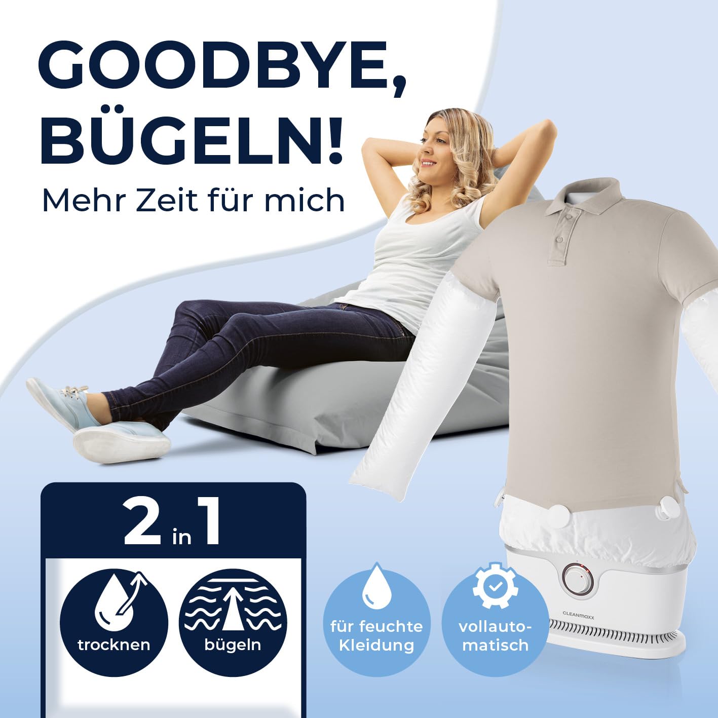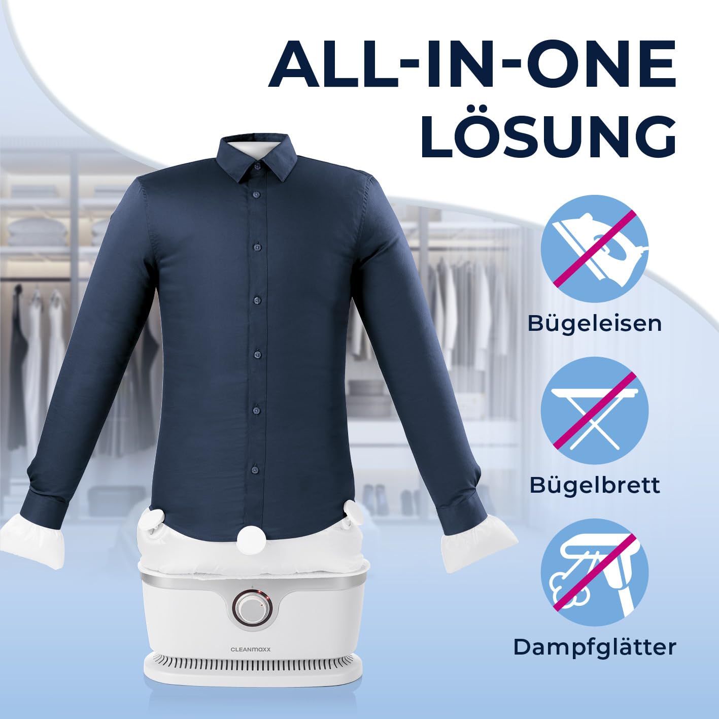 - GOODBYE, BÜGELN: Erlebe mit dem CLEANmaxx Hemdenbügler PRO vollautomatisches Bügeln & spare Zeit im Alltag. Du brauchst zudem nur noch 1 Gerät für alles; verabschiede dich von Bügeleisen, Wäschetrockner & Dampfglätter. On top bietet der Hemdenbügler eine clevere Trockenfunktion für feuchte Kleidung!