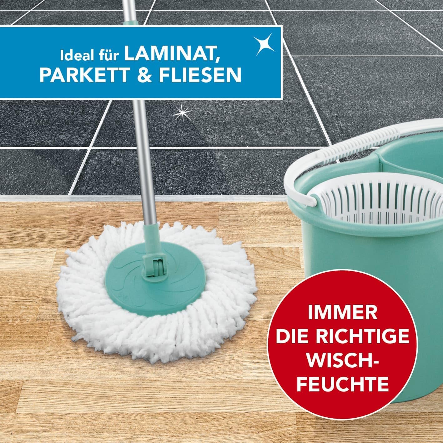 - LIEFERUMFANG - Komplettset aus Wischmop und Eimer mit Zwei-Kammer-Filtersystem, Mikrofaser Wischtuch (bis 60C° in der Waschmaschine waschbar). Die Tücher sind auch als Ersatztücher nachzukaufen: ASIN B00KX6MKXQ