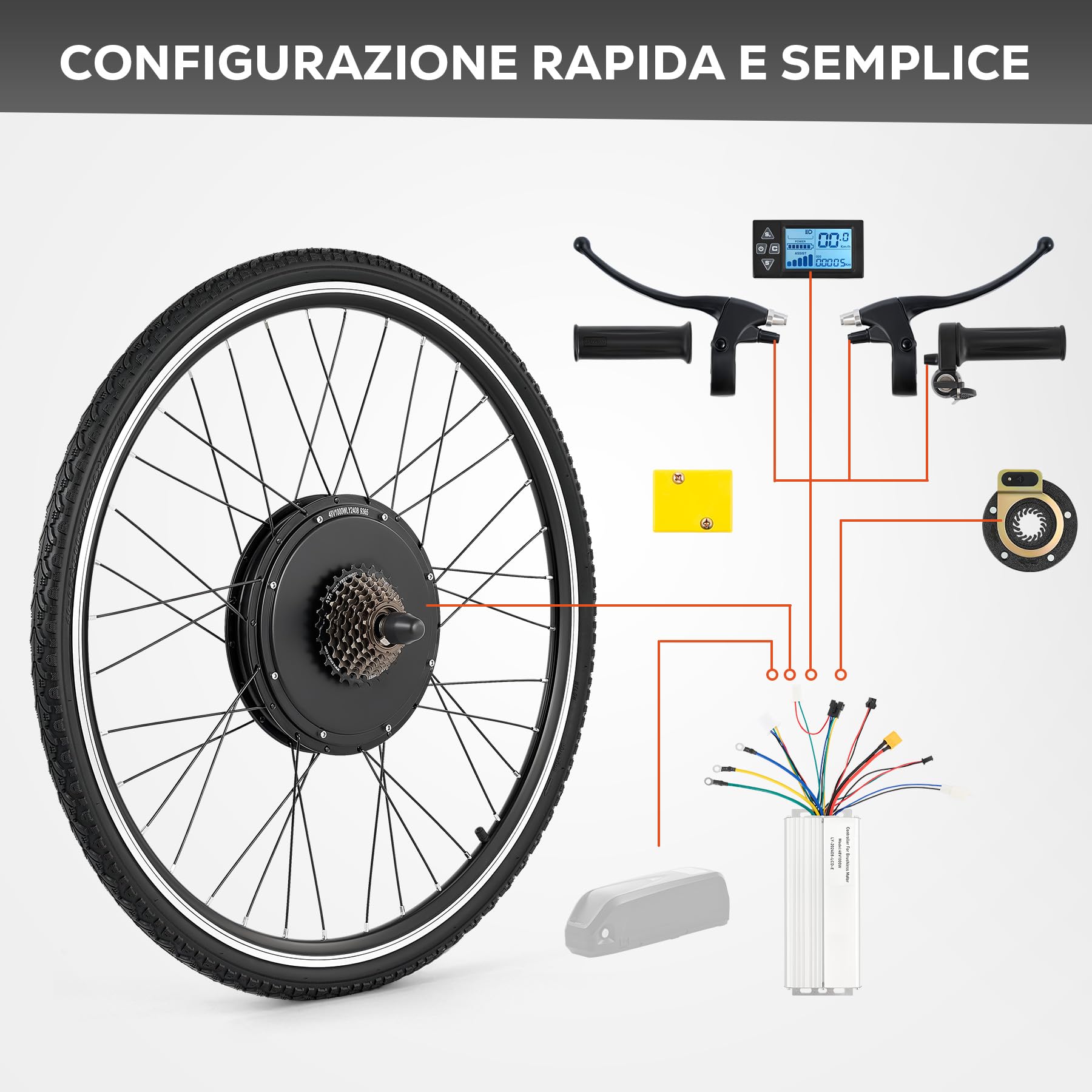 • -Passt perfekt zu Ihrem Fahrrad: Dieser Elektrofahrrad-Umrüstsatz ist mit den meisten 28"-Fahrrädern mit 13,5-14,2 cm Gabelbreite kompatibel und macht das Aufrüsten zu einem Kinderspiel. Suchen Sie einfach den passenden 48-V-Akku (nicht im Lieferumfang enthalten), schließen Sie ihn an und los geht's