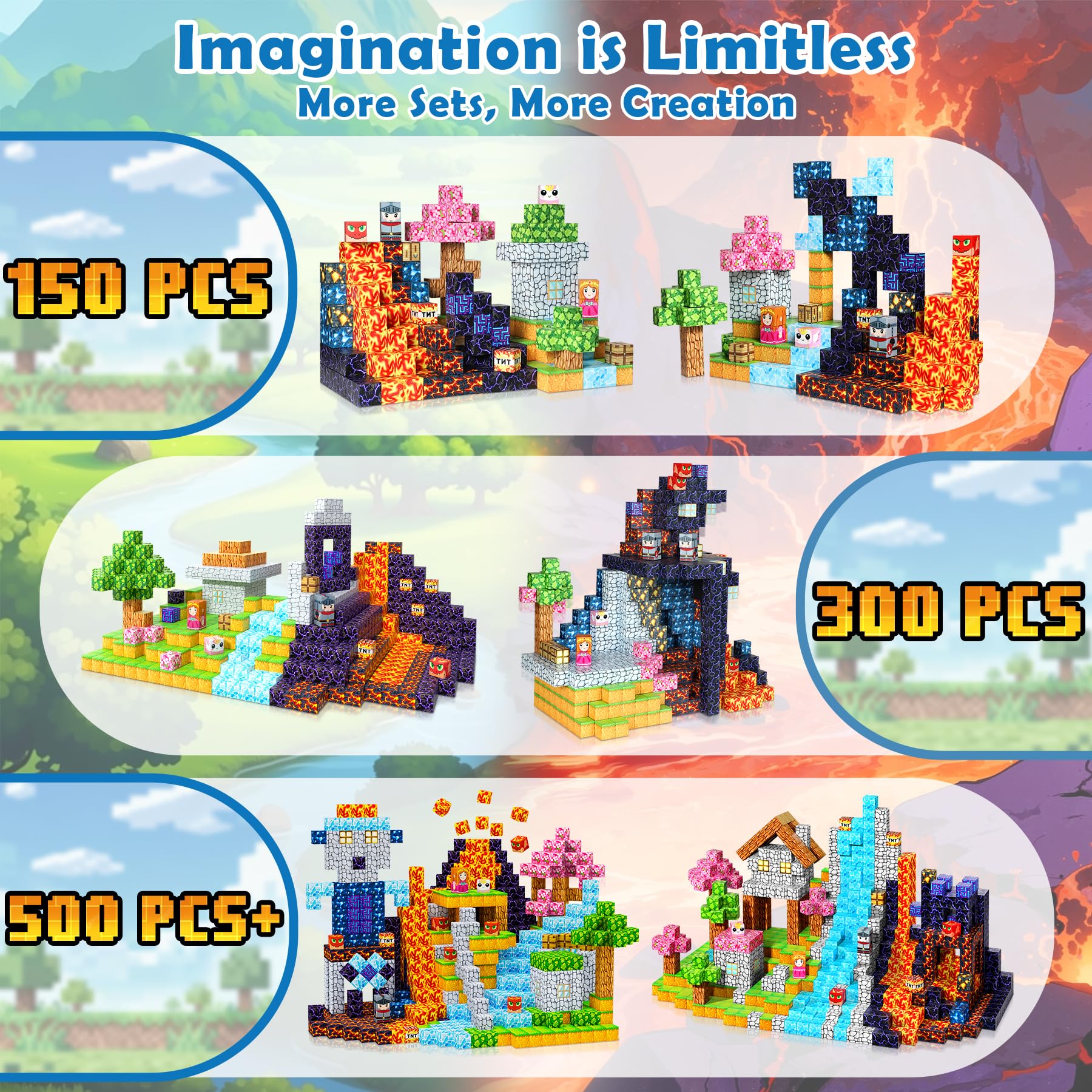 • 【Kreativität Freisetzen】Die farbenfrohen magnetische bausteine in den beiden themen eröffnen den kindern eine welt voller fantasie.Das offene Design ermöglicht es ihnen, ihre eigenen Welten zu bauen, zum Beispiel einen Fluss, eine Wiese, eine Burg oder Lava, Blitz und Dunkelheit.Dadurch wird nicht nur die Entdeckerlust der Kinder geweckt, sondern auch ihre Kreativität gefördert.