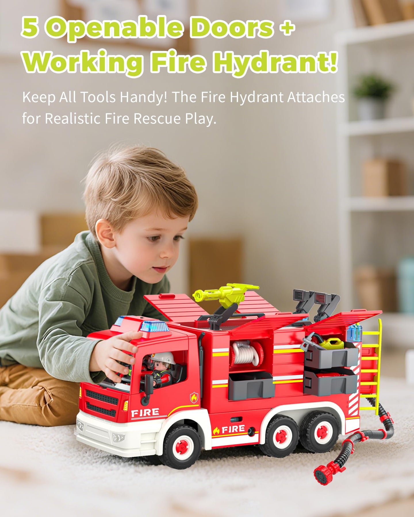 • 🚒【RIESIGE, AUTHENTISCHE FEUERWEHRAUTO-SPIELZEUG】:Hol dir die Feuerwache ins Kinderzimmer! Dieses übergroße Feuerwehrauto ((über 35 cm lang) ist die Basis für grenzenlose Abenteuer. Dein kleiner Held hat alles, was er für den Einsatz braucht – perfekt, um kreatives Spielen und große Träume zu entfachen!