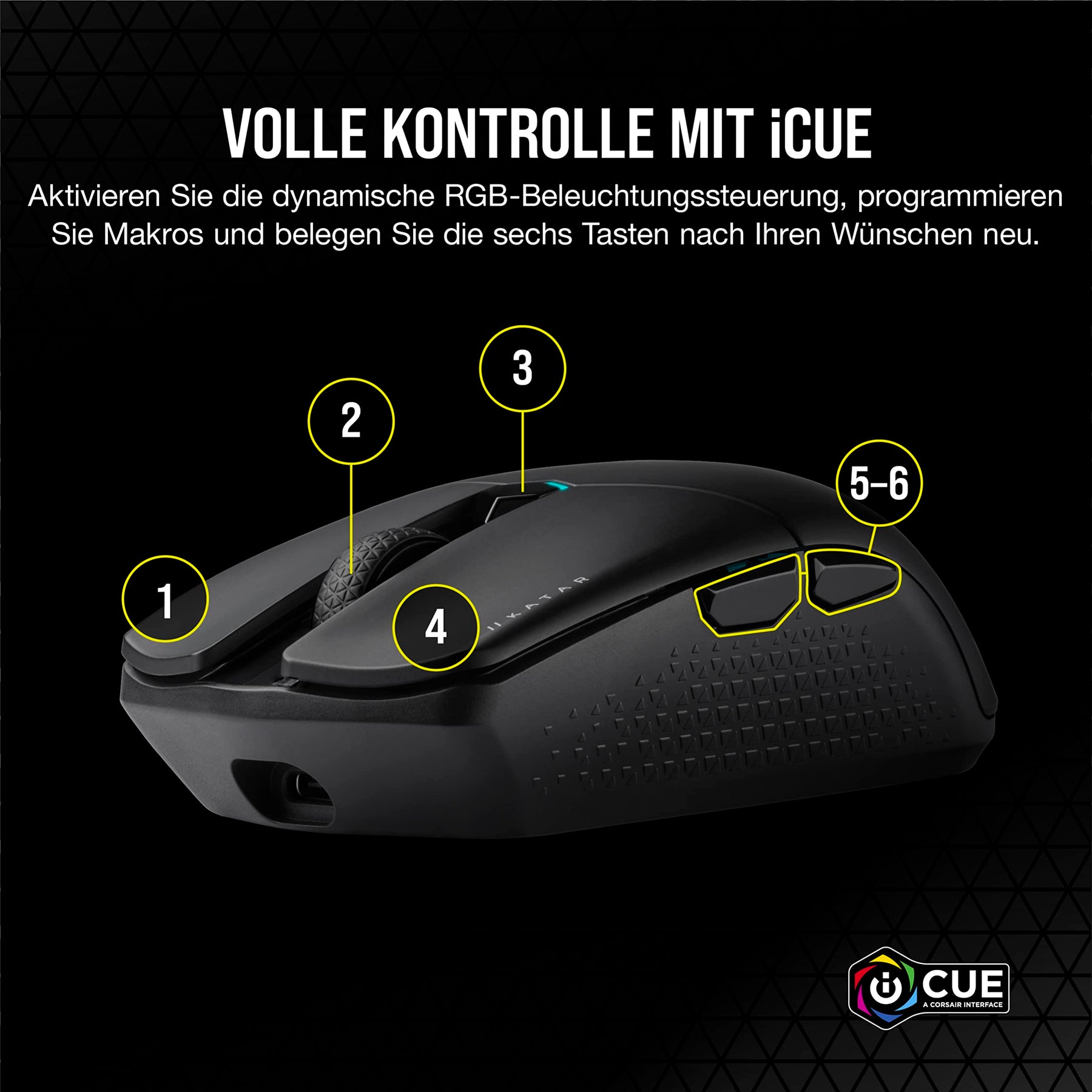 - CORSAIR QUICKSTRIKE-Tasten: Verfügen über eine Federung, und zwischen den primären Maustasten und ihren OMRON-Schaltern ist kein Abstand vorhanden, sodass Ihre Klicks, Schüsse und Zauber blitzschnell registriert werden.