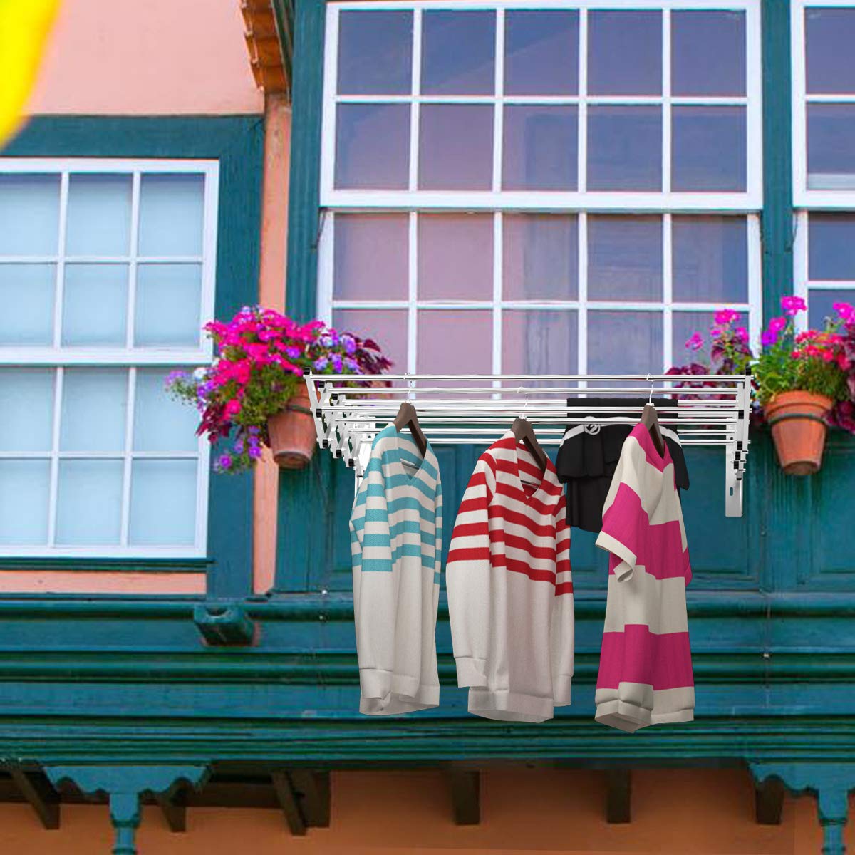 【Erweiterbares und platzsparendes Design】Dieser Wandwäschetrockner verfügt über ein einziehbares Ziehharmonika-Design. Bei Bedarf können Sie ihn einfach herausziehen, um mehr Kleidung oder Handtücher aufzuhängen. Bei Nichtgebrauch lässt sich dieser Wandwäschetrockner im Handumdrehen platzsparend zusammenklappen, was ideal für begrenzte Wohnräume ist.