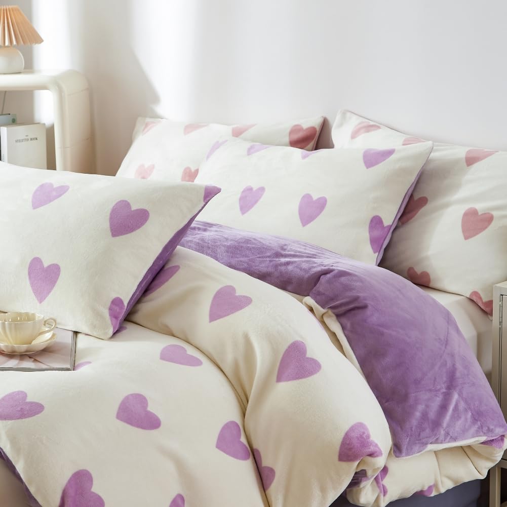 - Aesthetic Design: Die Wendebettwäsche ist mit einem Herzmuster bedruckt, das dem Schlafzimmer eine einzigartige Wärme und Romantik verleihen kann. Diese Bettwäsche ist in den Farben Rosa, Rot, Hellviolett, Grün und Schwarz erhältlich. Das elegante Design kann Ihnen helfen, in Ihrem hektischen Leben Ruhe und Komfort zu finden. Es ist auch ein perfektes Geschenk für Ihre Familie und Freunde zu Weihnachten, Neujahr, Geburtstag und so weiter.