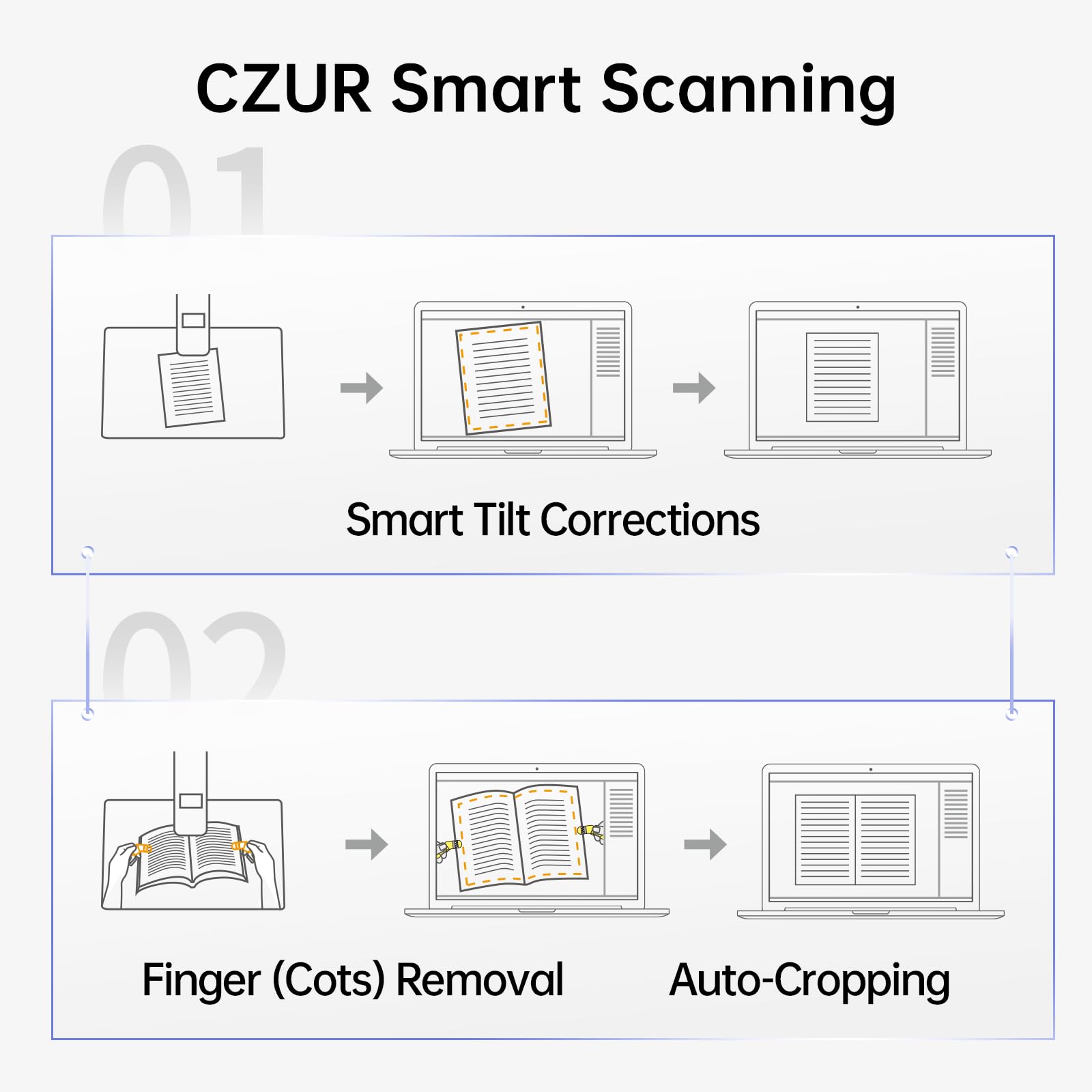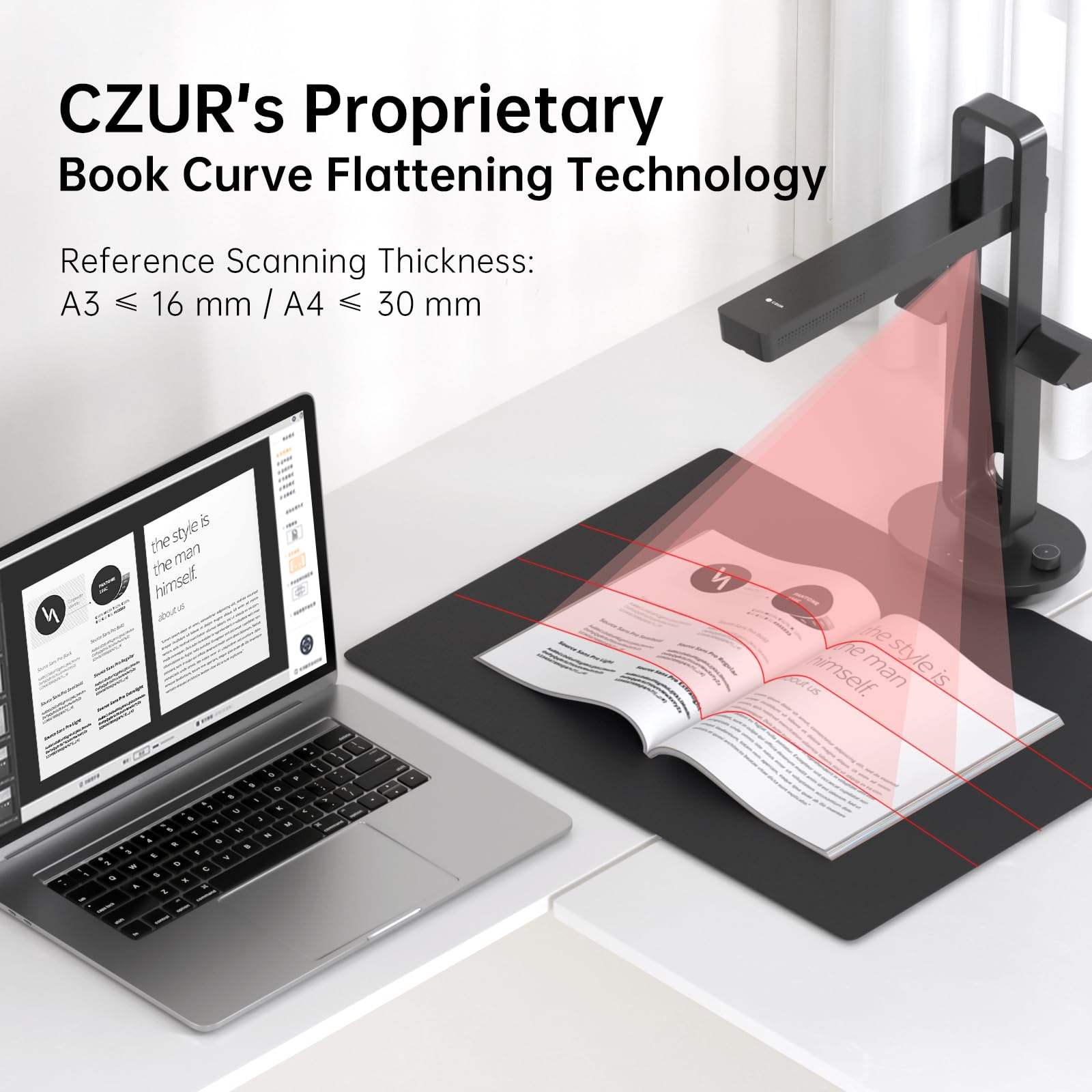 - Vielfältige Dokumente Scannbar: Dank der initiativen Bildabflachungstechnologie von CZUR brauchen Sie nicht mehr die Buchbinden während des Scannens zu beschädigen/zerlegen. Mithilfe drei Laserstrahlen werden gewölbte Buchseiten intelligent simuliert, dabei werden den Buchseiten durch AI-Technologie abgeflacht. CZUR Aura Pro Scanner kann nicht nur flache Dokumente, sondern auch gewölbte Bücher, Verträge, Gemälde, Formulare, Rechnungen, Visitenkarten usw. Dokumente kleiner als A3 Größe scannen.