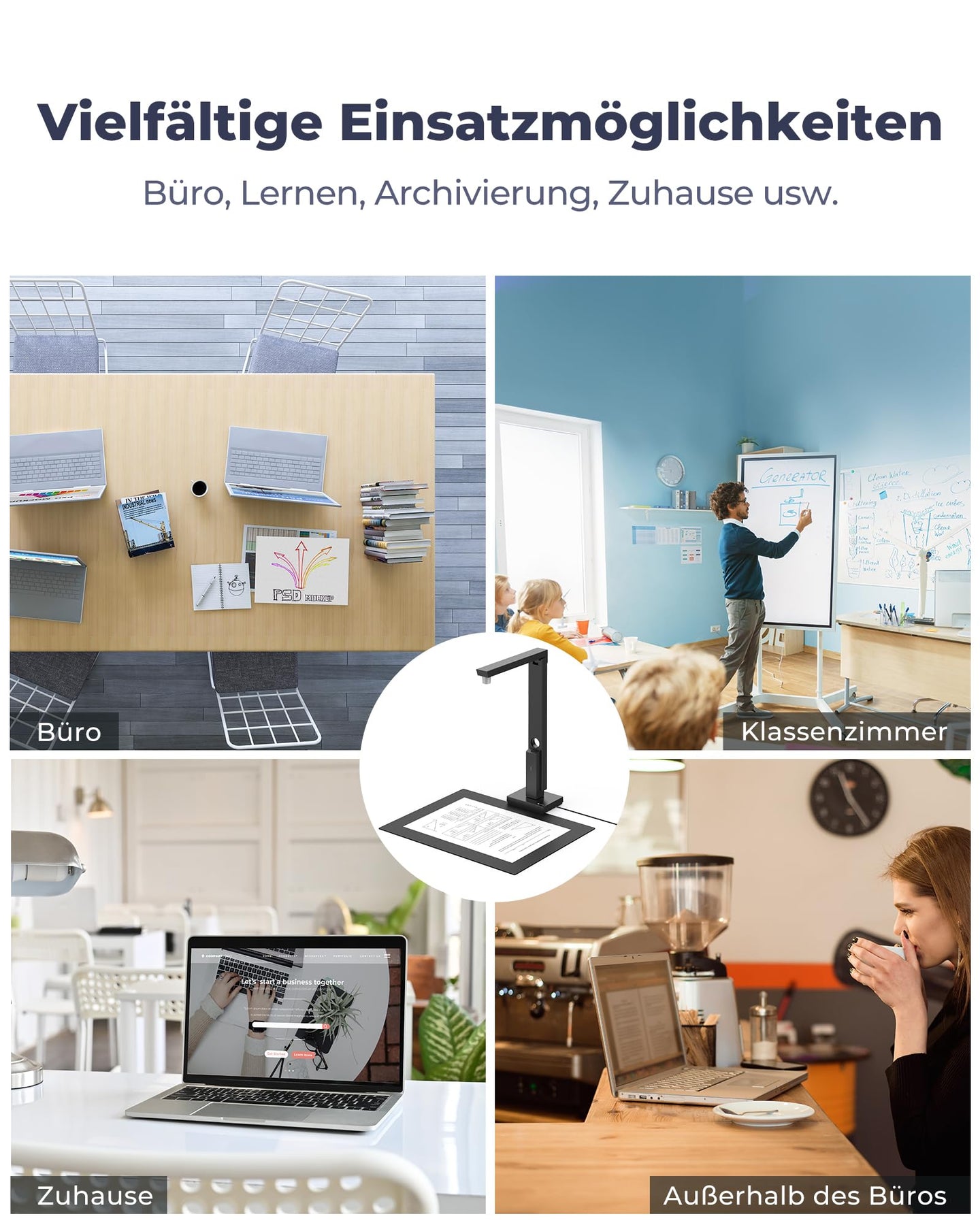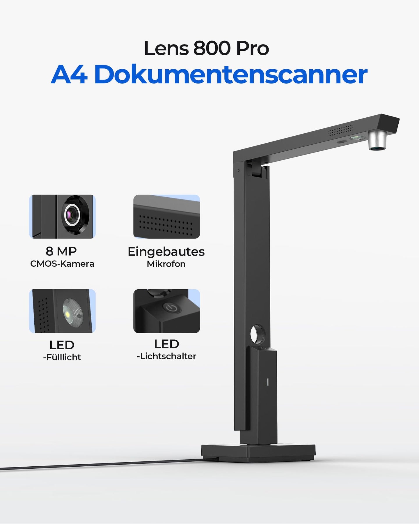 CZUR 8MP USB-Dokumentenkamera und Visualizer, A4 Dokumentenscanner tragbarer Scanner, für Lehr- und Klassenzimmer, Home-Office, kompatibel mit Windows, macOS (Lens800)