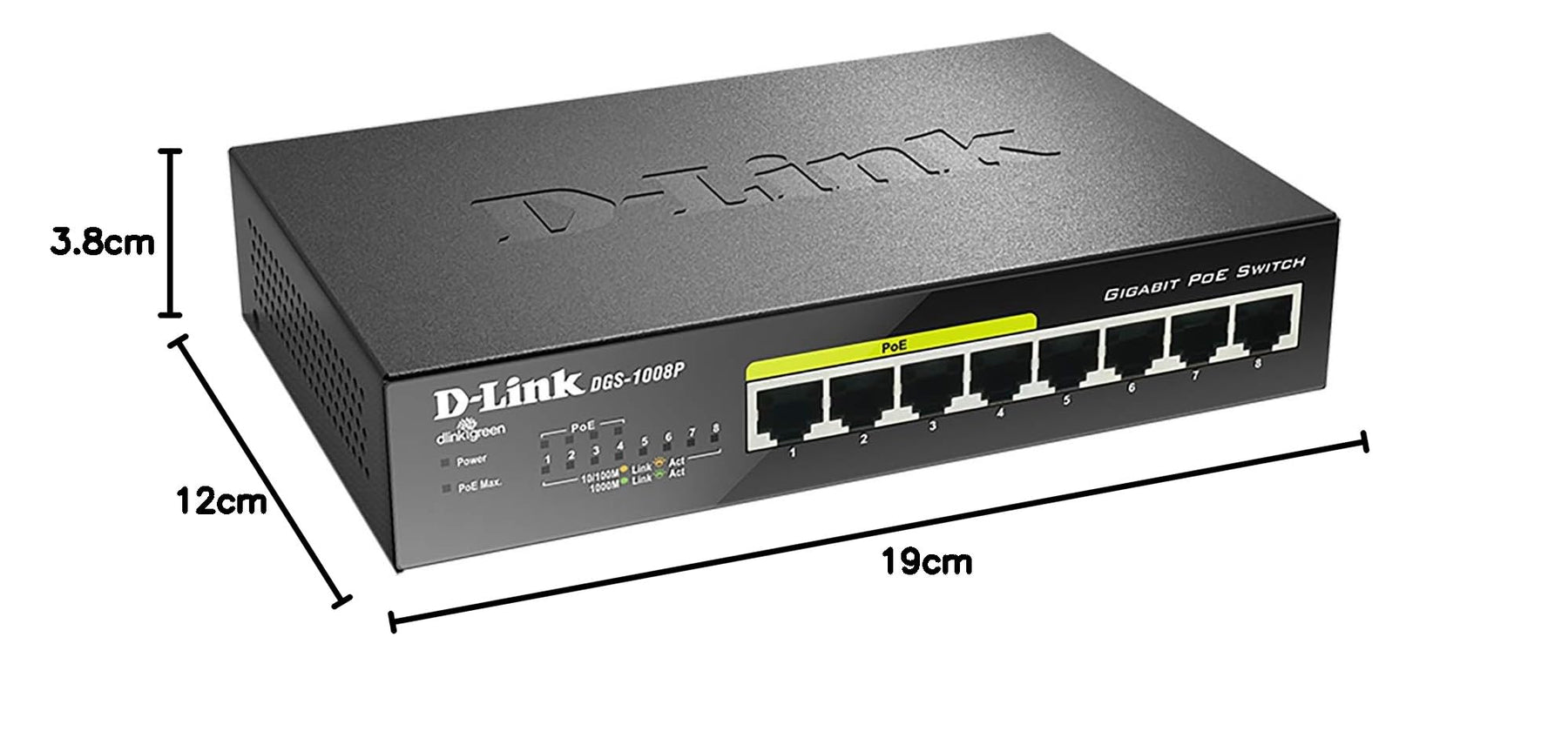 Der 8-Port Switch DGS-1008P von D-Link ermöglicht Heim- und Büronutzern den einfachen Anschluss und die Stromversorgung von Power over Ethernet (PoE) -Geräten wie Wireless Access Points (APs), IP-Kameras und IP-Telefonen während weitere Ethernet-Geräte wie Computer, Drucker und Network Attached Storage (NAS) in ein Netzwerk eingebunden werden. Dieser kompakte PoE-Switch wurde für Heim- und Kleinunternehmen entwickelt, weshalb er leise arbeitet und sich daher ideal für den Einsatz in praktisch jedem Raum oder Büro eignet.