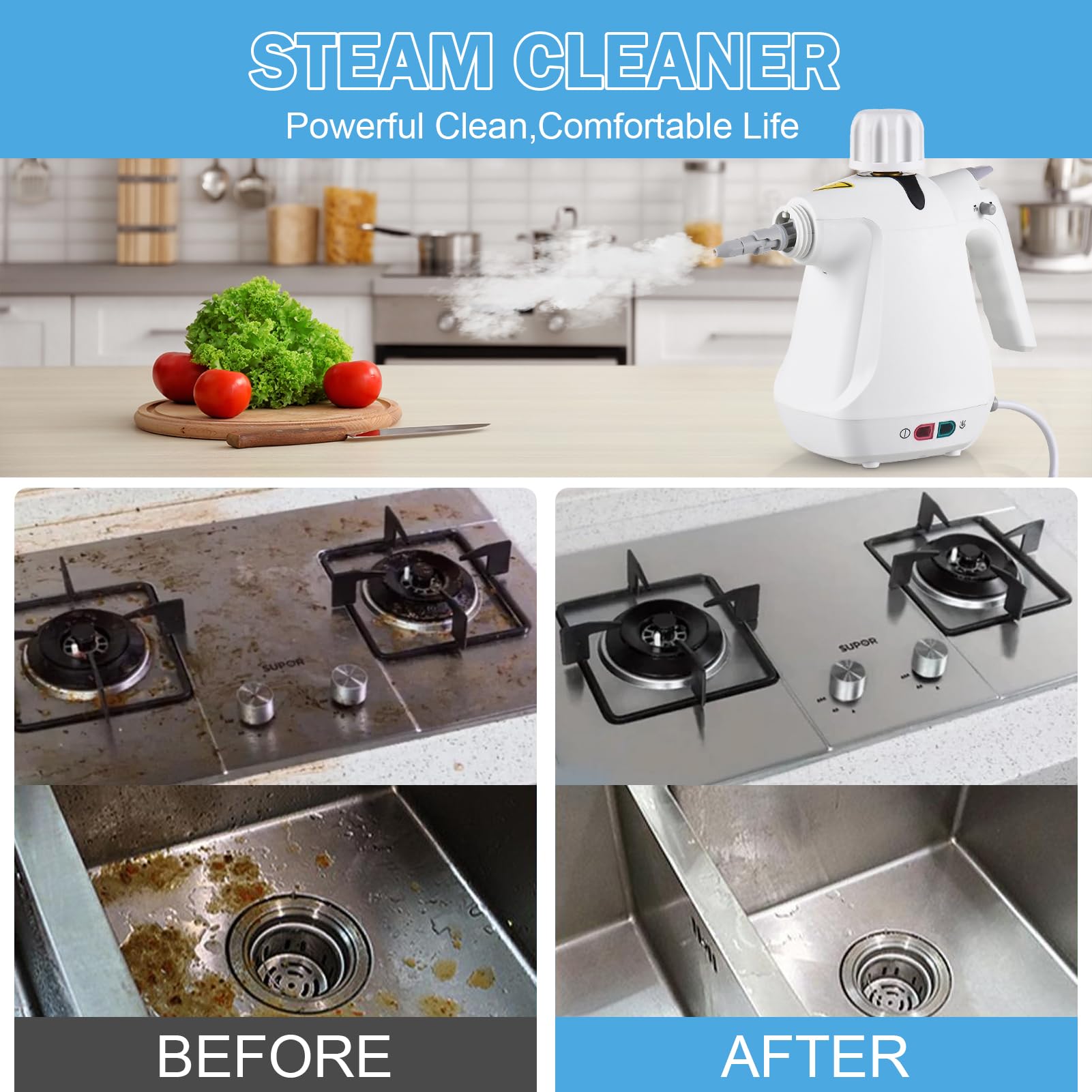 • 【Sparen Sie Zeit】Bietet 239℉ Hochdruck-Heißdampf, um hartnäckige Flecken zu reinigen, spart Ihre Zeit und verbessert Ihre Effizienz. Reiner natürlicher Haushaltsdampfer, mit 100% nicht-chemischer Wasserreinigung, ohne schädliche Substanzen und Rückstände, um die Sicherheit der Familie zu gewährleisten.