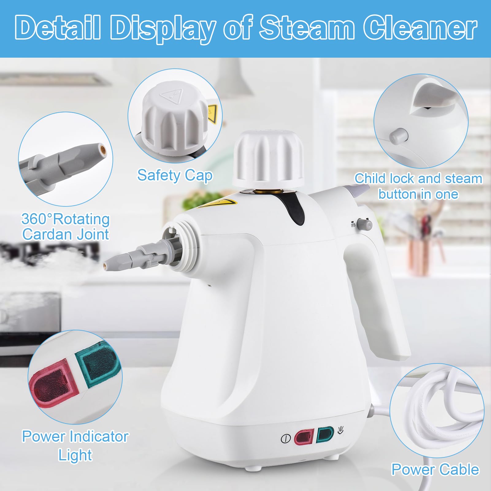 • 【Multi-Surface-Reinigung】Dampfreiniger handgerät ist für praktisch alle harten Oberflächen geeignet, einschließlich: Keramik, Marmor und versiegeltes Hartholz. Es ist großartig für Fliesen, Waschbecken, Öfen, Fenster, Sofa, Auto, Kinderspielzeug, Waschbecken, Öfen, Grill, Toilette, Duschvorhänge, Autositze & Felgen, Tapeten und mehr.