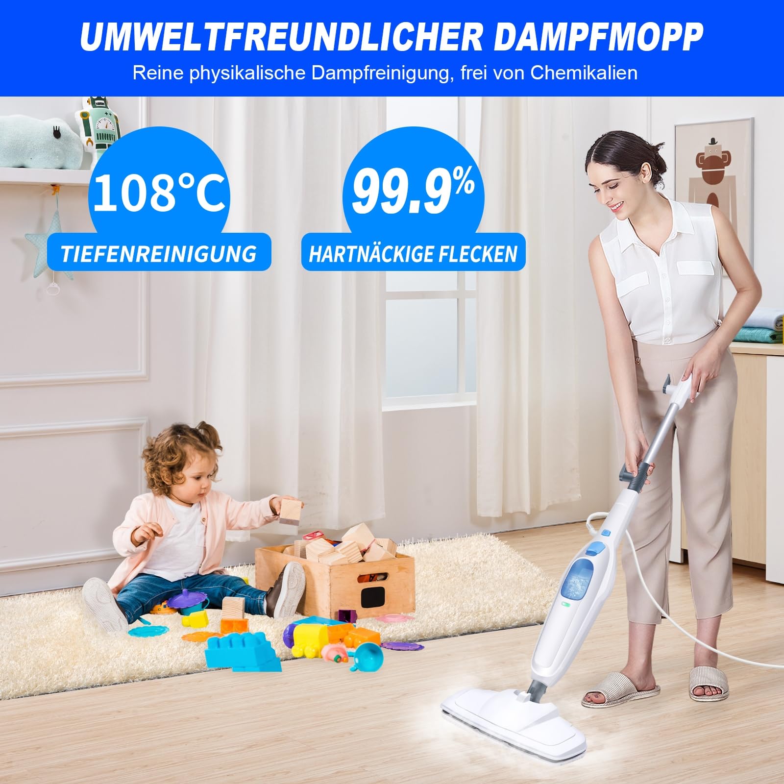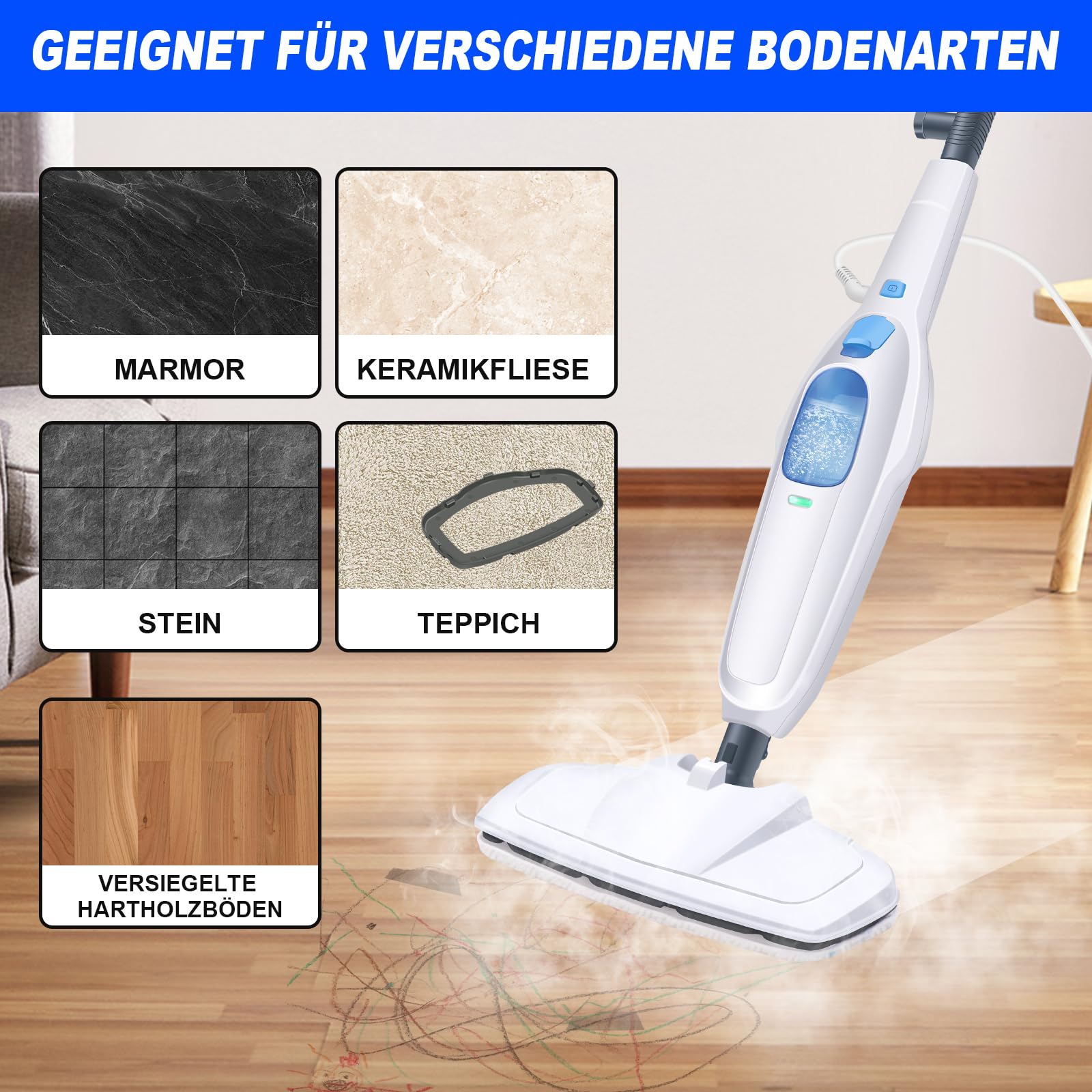 - 【Effiziente Reinigung】Der Dampfreiniger ist eine perfekte Lösung für die natürliche Tiefenreinigung, gründlicher Reinigung bis zu 99,999% der Viren und Bakterien, halten Sie Ihre Böden ohne chemische Rückstände sauber und entfernen Sie auch Gerüche. schnelles Bodentrocknen ohne Beschädigung, effiziente Reinigung zwischen verschiedenen Bodentypen oder andere Verwendung.