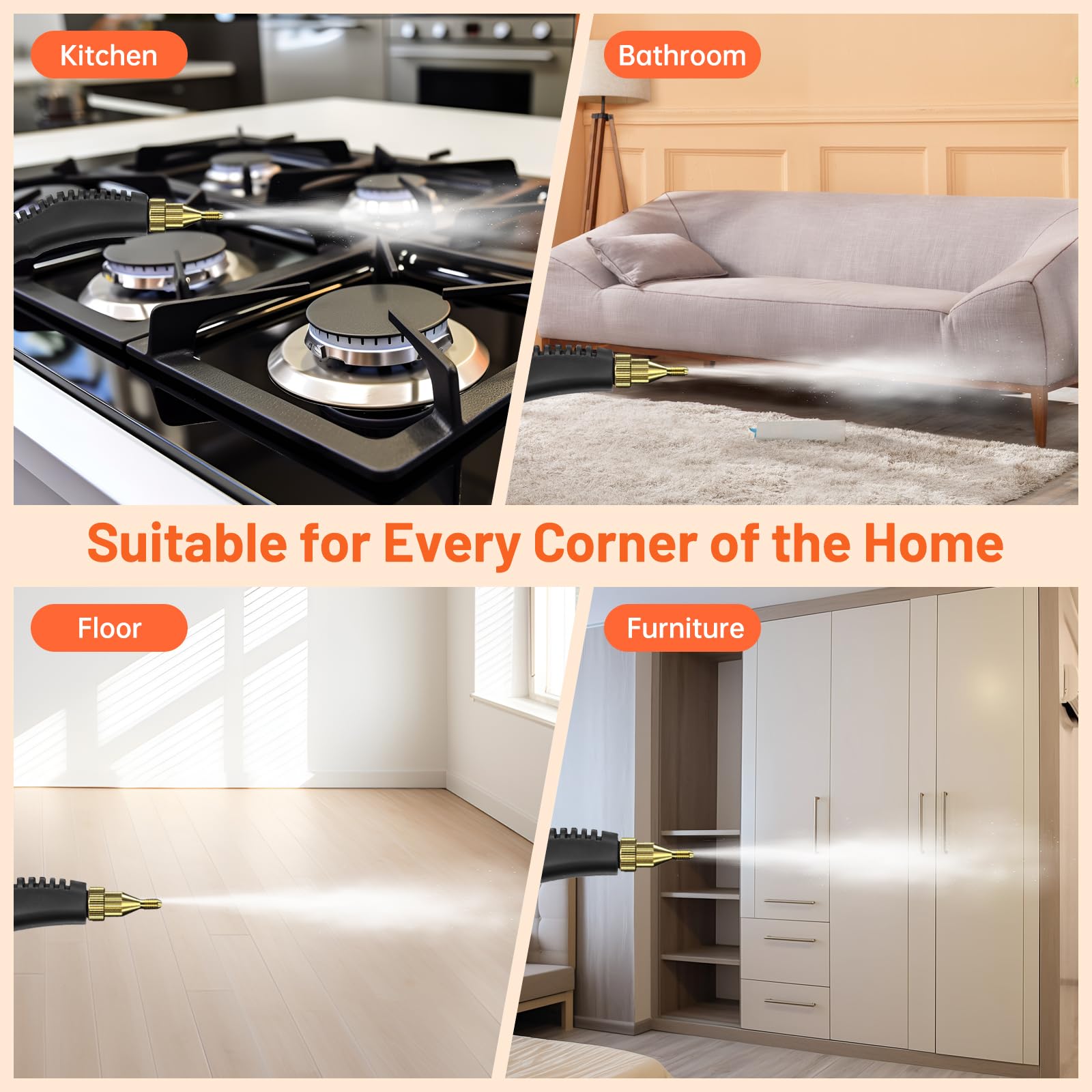 - 💫【2500W Dampfreiniger】Der handdampfreiniger heizt sich auf und erzeugt in nur 10 Sekunden Dampf, und Sie können sofort mit der Reinigung beginnen.Dieser Steam Cleaner erzeugt 229°F/105°C heißen Dampf, der schnell reinigen, sterilisieren und Gerüche entfernen kann.Außerdem erzeugt er 3 bar Druckdampf, der hartnäckige Flecken entfernen kann, die normale Reinigungsmaschinen nicht entfernen können, wodurch die Effizienz um 80–90% erhöht wird, machen Sie die Reinigung effektiver und schneller.