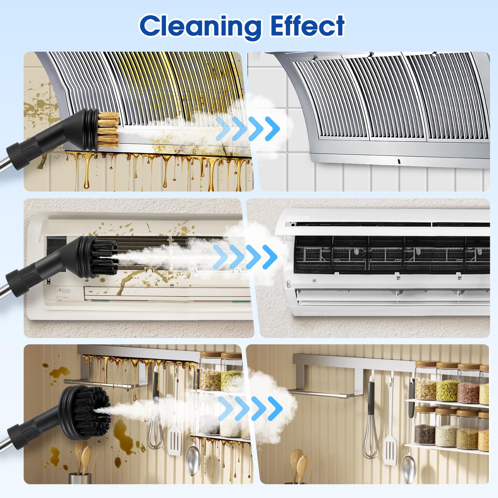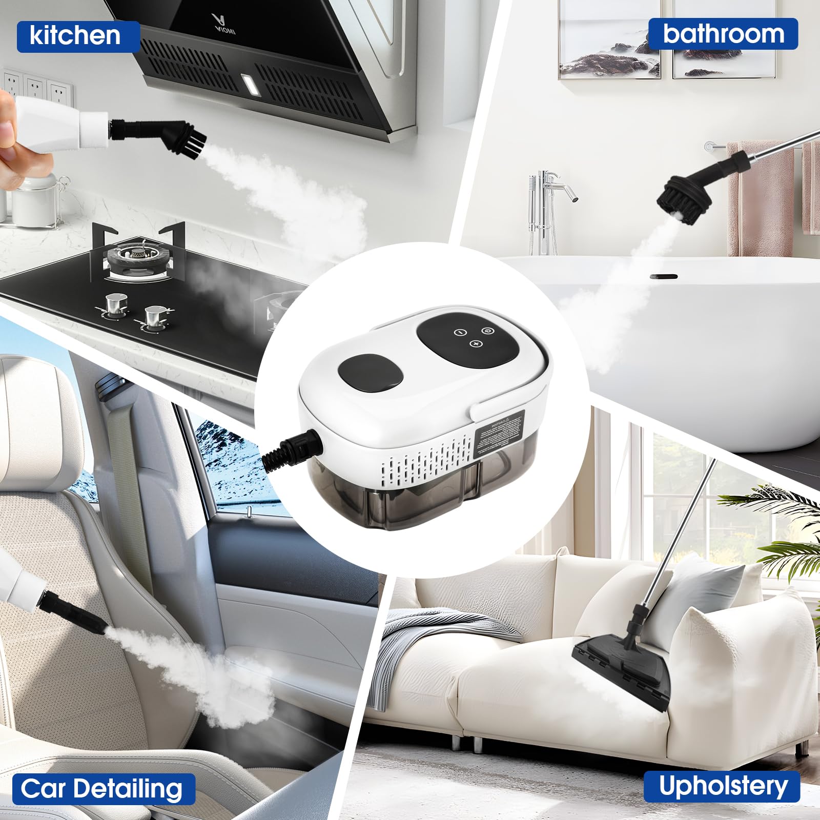 Diese Dampfreinigungsmaschine ist eine Art effizientes Reinigungsgerät. Es ist ein guter Helfer für Haus und Küche Reinigungsarbeiten. Hohe Dampftemperatur und hoher Dampfdruck können Ihnen helfen, schnell Schmutz, Staub und andere Ablagerungen von der Oberfläche der Objekte zu entfernen.