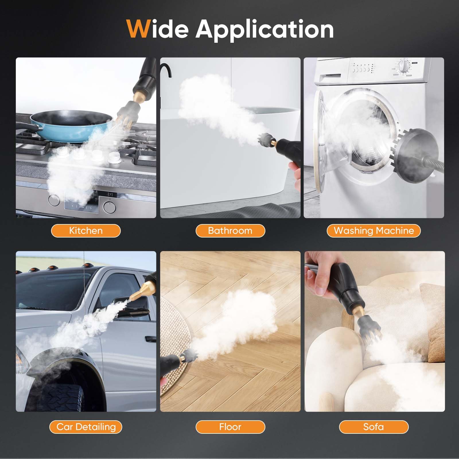 - 【Multifunktionaler Dampfreiniger】:Universeller Dampfreiniger kann zum Reinigen von Wänden, Herden, Dampfhauben, Mikrowellenherden, Waschmaschinen, Kühlschränken und mehr verwendet werden.Ideal für Küche, Bad, Möbel, Auto und mehr. Dieser Dampfreiniger ist ein multifunktionales Gerät, das eine Vielzahl von Reinigungsaufgaben effektiv erledigen kann.