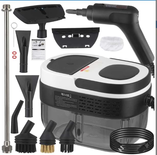 • VIELSEITIGE ANWENDUNG: Der Handdampfreiniger ist ideal für Haushalte, Büros und Fahrzeuge. Er kann als Dampfreiniger für Fugen auf Fliesenböden, als Dampfreiniger für Badezimmer oder sogar als Dampfreiniger für Autos verwendet werden. Ob Sie nun Möbel oder Oberflächen reinigen, dieser Dampfreiniger im Stil eines Dampfwagens sorgt für eine gründliche Reinigung. Als Mehrzweck-Dampfreiniger eignet er sich für Hartböden, Teppiche und Polstermöbel, was den Handdampfreiniger zu einem vielseitigen Werkzeug für alle Räume macht.