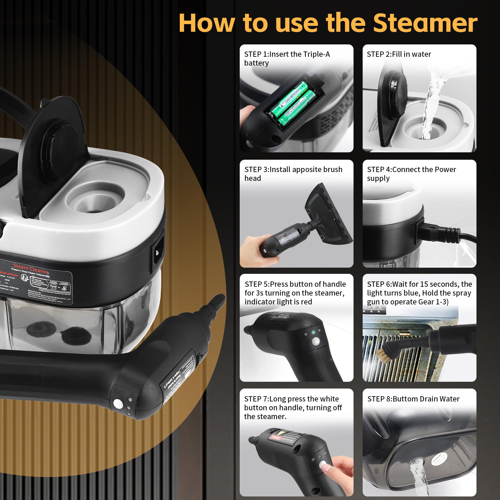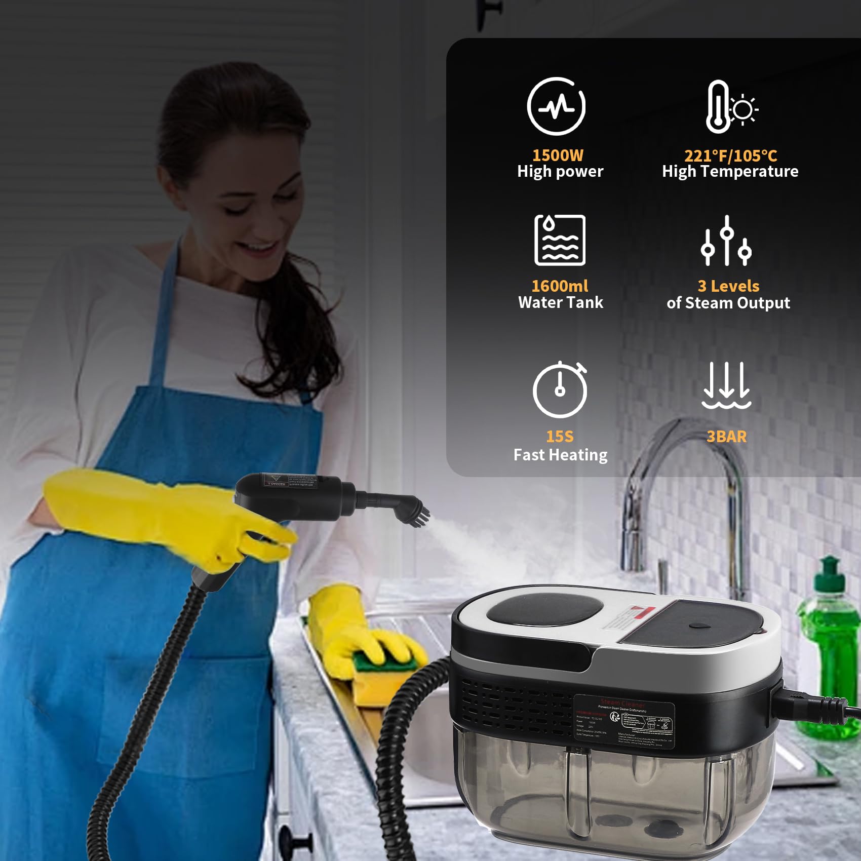 • HOHE LEISTUNG&SCHNELLES AUFHEIZEN: Der Dampfreiniger hat eine Leistung von 1500W und erzeugt einen Druck von 3BAR und einen Dampf von 100°C (212°F). Dieser Dampfreiniger für die Reinigung heizt in nur 15 Sekunden auf und erzeugt Hochtemperaturdampf, der Schmutz effektiv entfernt. Dieser handgeführte Dampfreiniger eignet sich perfekt für Fliesen und Fugen und ist ein zuverlässiger Dampfreiniger für das Badezimmer. Dieser kompakte und effiziente Druckdampfreiniger für den Hausgebrauch sorgt für eine kraftvolle Reinigung!
