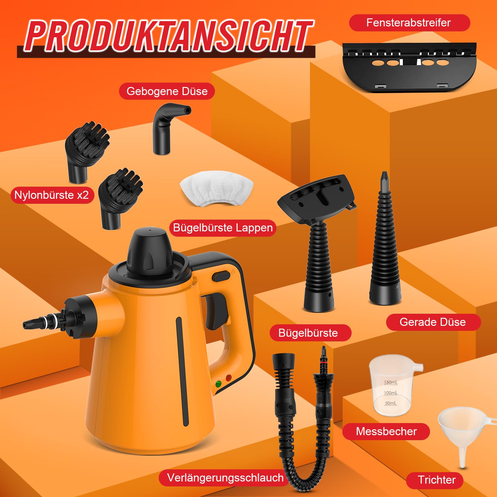 - KOMMT MIT 10 AUFSÄTZEN: Unser Boden Dampfreiniger wird mit 10 Aufsätzen geliefert, die austauschbar verwendet werden können, um alle schwer zugänglichen Bereiche wie Fenster, Bodenspalten, Fliesen, Kinderspielzeug, Waschbecken, Toiletten und Autositze zu reinigen