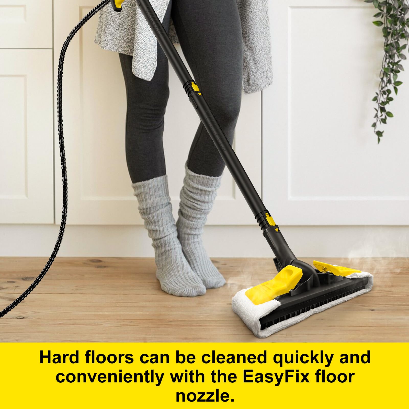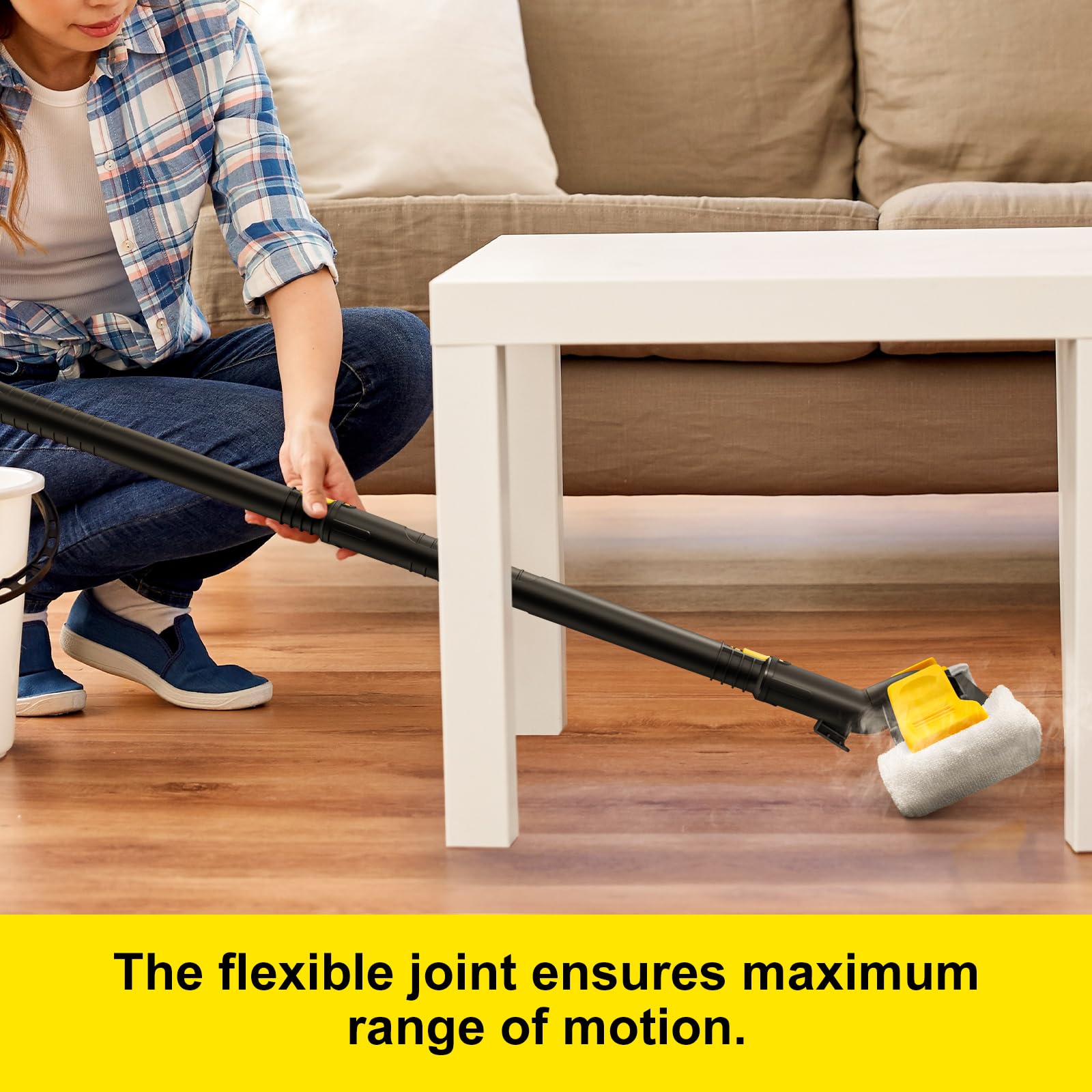 • Bodenreinigung: Mit dem Bodenreinigungsset, bestehend aus Verlängerungsrohren, Bodendüse und Mikrofaser-Bodentuch, lassen sich sämtliche Hartböden im Haushalt komfortabel reinigen