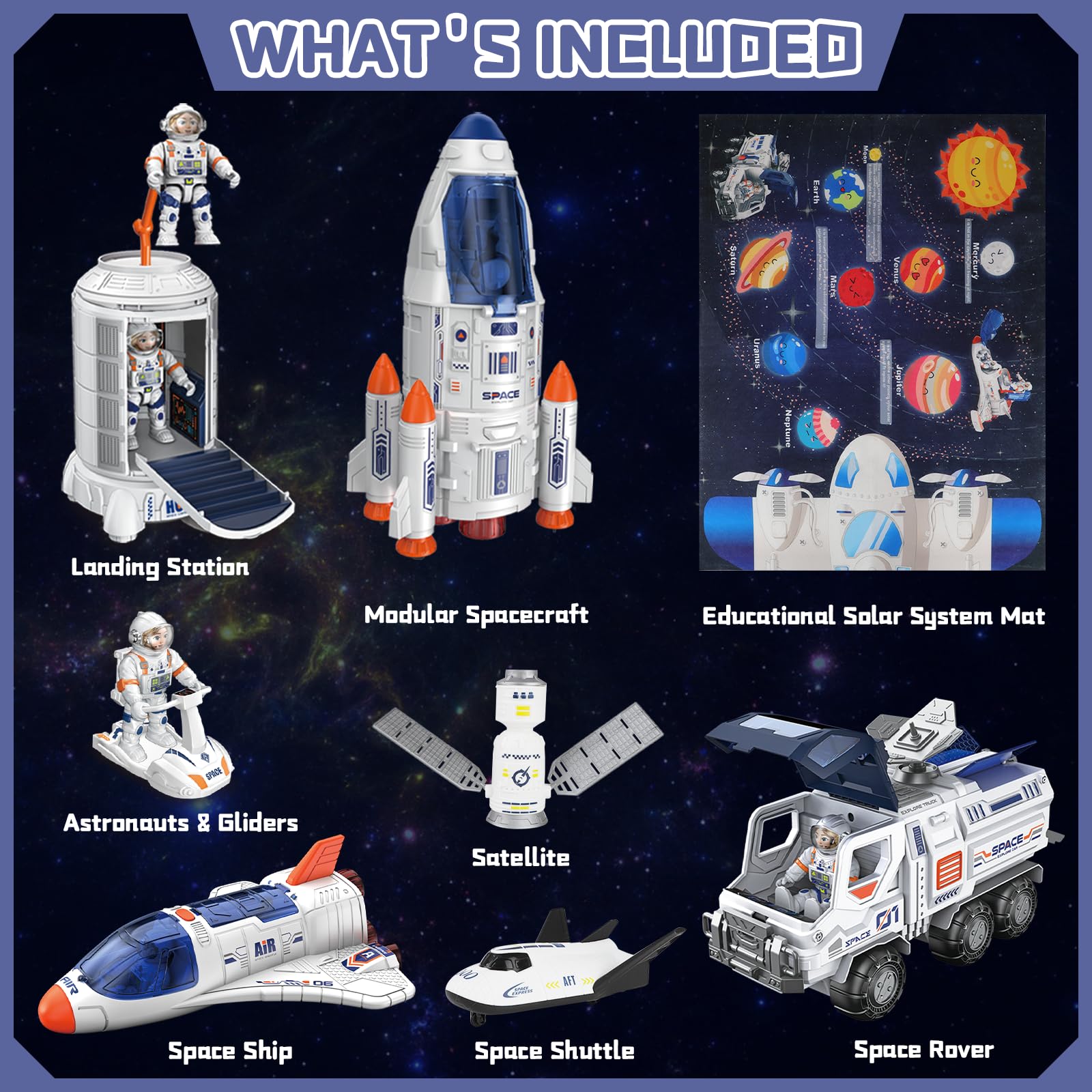 - Raumschiffe-Spielzeug für Kinder | Galaktisches Abenteuer: Spielspaß für kleine Astronauten | raketen spielzeug für kinder: Mit diesem detailreichen Raketen-Spielset können Kinder in spannende Weltraummissionen starten! Das Komplettpaket enthält alles für interstellare Abenteuer: Raumfähren, Rover, Astronautenfiguren und eine spezielle Solarmatte. Perfekt für Rollenspiele, die die Begeisterung für Wissenschaft und Raumfahrt wecken.