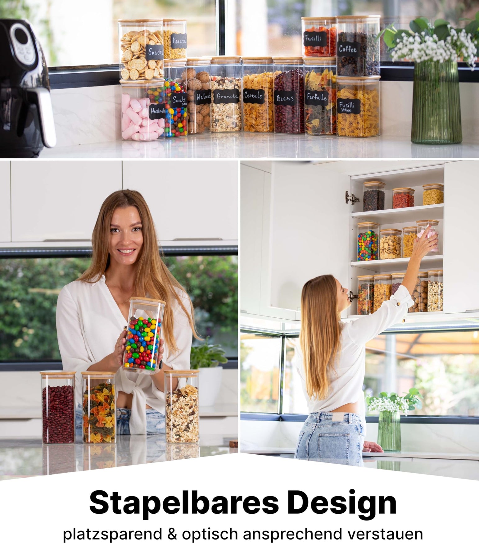 • PRAKTISCHE ETIKETTEN - Exklusiv zu Ihrem Vorratsdosen set erhalten Sie außerdem 8 stilvolle Etiketten und einen Kreidestift, mit denen Sie Ihre Vorratsgläser oder andere Dinge beschriften können
