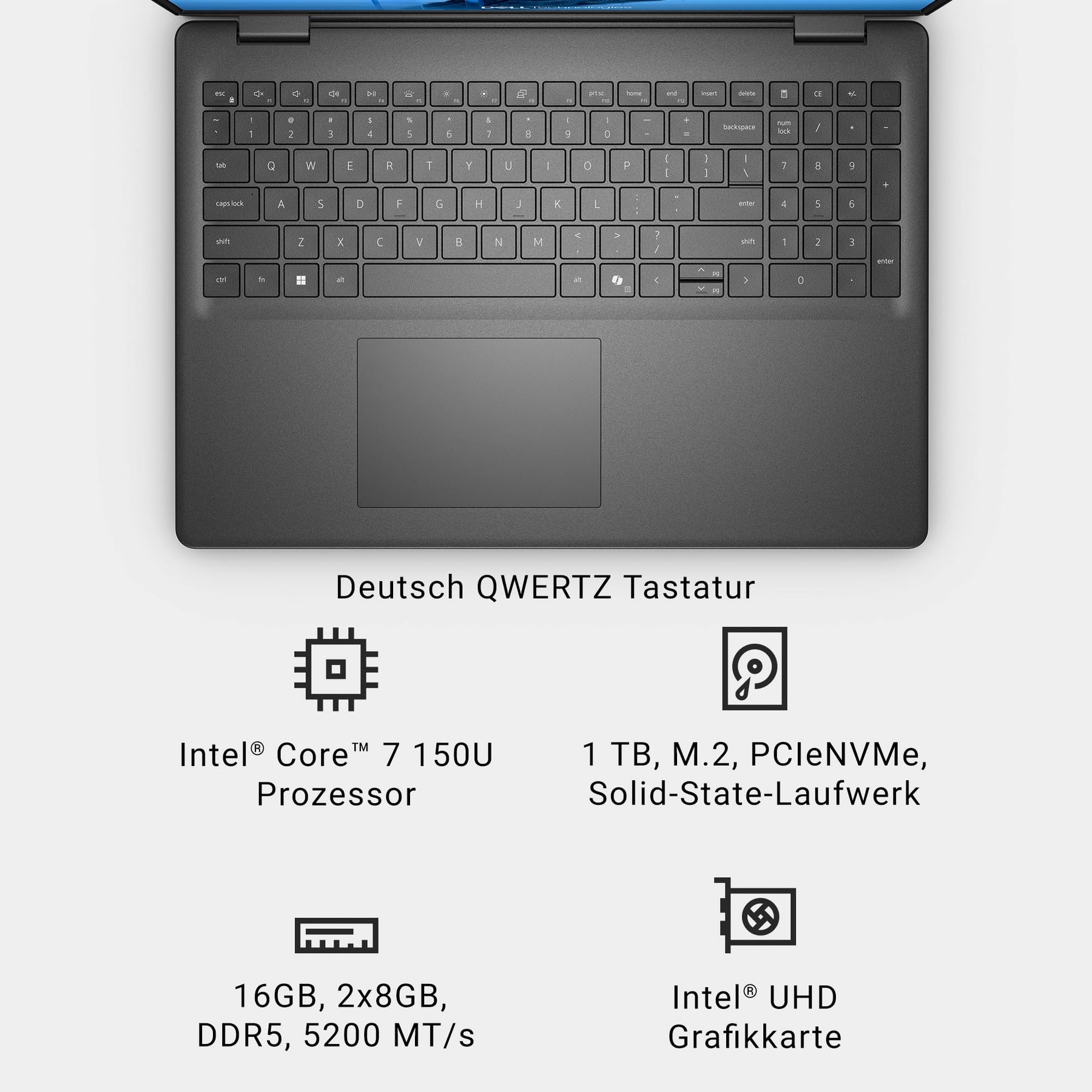 Einzelheiten: Der Dell 16 DC16250 Laptop wurde für Anwender entwickelt, die sowohl Leistung als auch Mobilität benötigen. Mit seinem großzügigen 16-Zoll-FHD+ WVA-Display im 16:10-Format und ComfortView-Technologie bietet er eine klare, augenschonende Darstellung – ideal für Produktivität und Unterhaltung über den ganzen Tag. Im Inneren arbeitet ein Intel® Core™ 7 150U Prozessor mit 10 Kernen und bis zu 5,4GHz Taktfrequenz – perfekt für anspruchsvolles Multitasking, Streaming oder Videokonferenzen. Die Kombination aus 16GB DDR5 RAM und 1TB SSD sorgt für schnellen Datenzugriff und reibungsloses Arbeiten. Für Sicherheit sorgt der integrierte Fingerabdruckleser, während die QWERTZ-Tastatur mit Hintergrundbeleuchtung und numerischem Tastenfeld eine komfortable Texteingabe ermöglicht. Die moderne Schnittstellenvielfalt – darunter USB-C mit Power Delivery und DisplayPort 1.4, HDMI, USB 3.2 und Wi-Fi 6 – stellt sicher, dass du jederzeit flexibel und vernetzt bleibst. Hergestellt aus langlebigen und recycelten Materialien, ist das Gerät EPEAT Silver zertifiziert und ENERGY STAR-konform. Die Verpackung besteht zu 100 % aus recycelten Materialien. Mit Windows 11 Home und der neuen Copilot-Taste erhältst du Zugriff auf integrierte KI-Tools für eine intelligentere Arbeitsweise – sei es im Beruf, Studium oder beim kreativen Arbeiten.