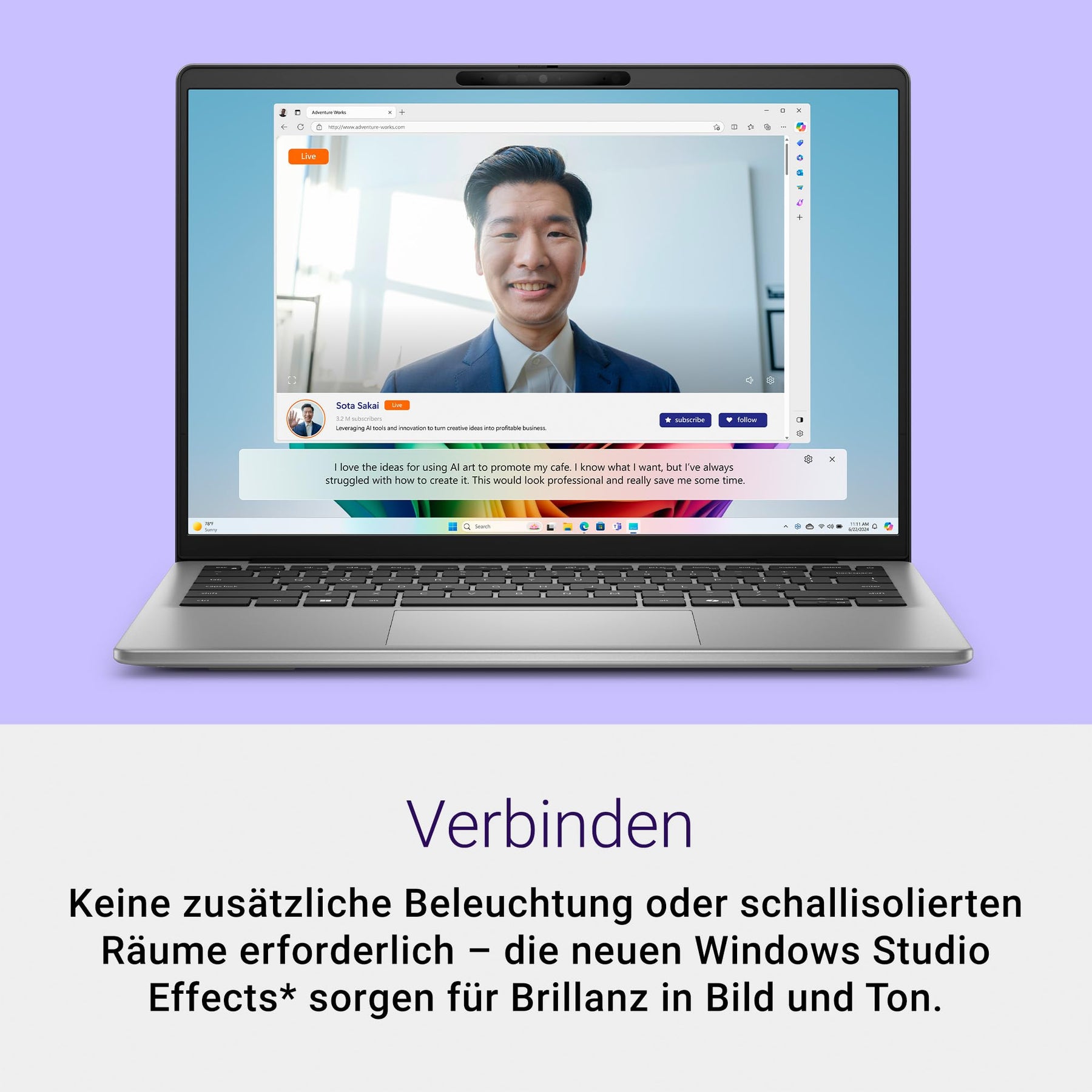 Einzelheiten: Das Dell Inspiron 14-5441 Laptop in Titan Grau kombiniert Mobilität mit hoher Leistung und ist perfekt für Anwender, die Wert auf Schnelligkeit, Effizienz und modernes Design legen. Mit seinem 14" FHD Non-Touch Display genießen Sie klare Bilder und ein 16:10 Seitenverhältnis, das für mehr Bildschirmfläche und ein produktiveres Multitasking-Erlebnis sorgt. Im Inneren dieses Laptops arbeitet der leistungsstarke Snapdragon X Plus 8-Core Prozessor mit bis zu 3,8 GHz, ideal für Arbeit und Freizeit. Der 16 GB LPDDR5X RAM mit 8448 MT/s ermöglicht reibungsloses Multitasking, während die 512 GB PCIe NVMe SSD schnellen Zugriff auf Daten und ausreichend Speicherplatz für alle Dateien und Anwendungen bietet. Ausgestattet mit der Qualcomm Adreno 740 Grafik liefert dieser Laptop eine überzeugende visuelle Leistung für Unterhaltung und alltägliche Aufgaben. Dank Windows 11 Home mit Copilot profitieren Sie von einer verbesserten Benutzererfahrung und KI-gestützter Unterstützung, die Ihre Produktivität steigert. Dieses Gerät ist für Konnektivität konzipiert und bietet Bluetooth®-Unterstützung, USB-C und USB 3.2 Anschlüsse sowie HDMI, sodass Sie problemlos Peripheriegeräte anschließen können. Die beleuchtete deutsche Tastatur sorgt für ein komfortables Tippen auch bei schwachem Licht und ist ideal für späte Arbeitssitzungen.