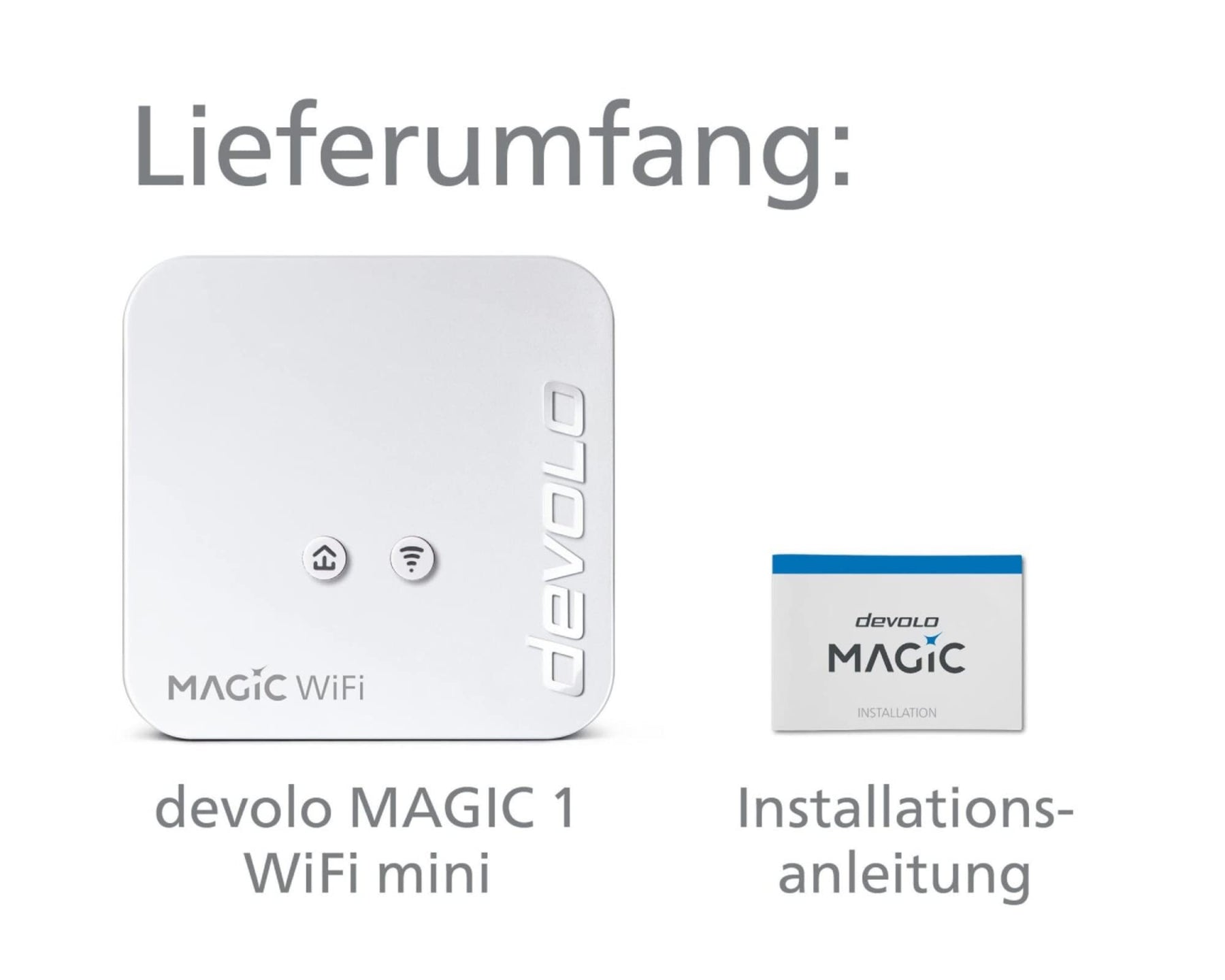 • Lieferumfang: 1x devolo Magic 1 WiFi mini, 1x Installationsanleitung, 1x Webcam-Linsenschutz oder Reinigungstuch