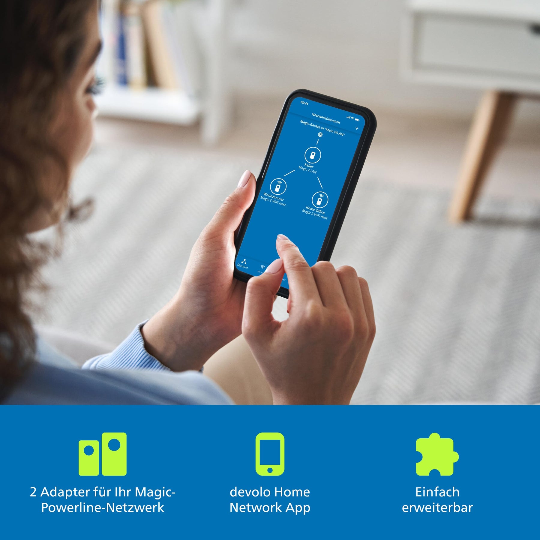 • Adapter-Set zum Aufbau eines devolo Magic-Powerline-Netzwerks mit 2 Adaptern: Perfekt für raum- und etagenübergreifendes Internet auf bis zu 2 Etagen