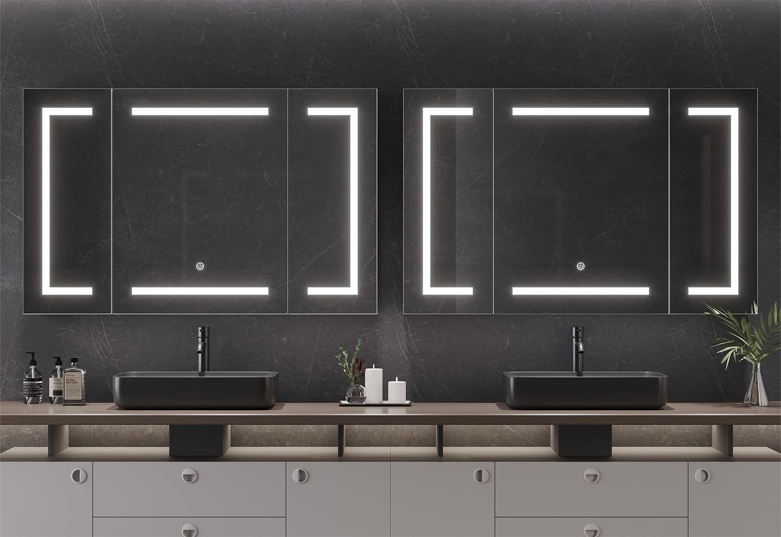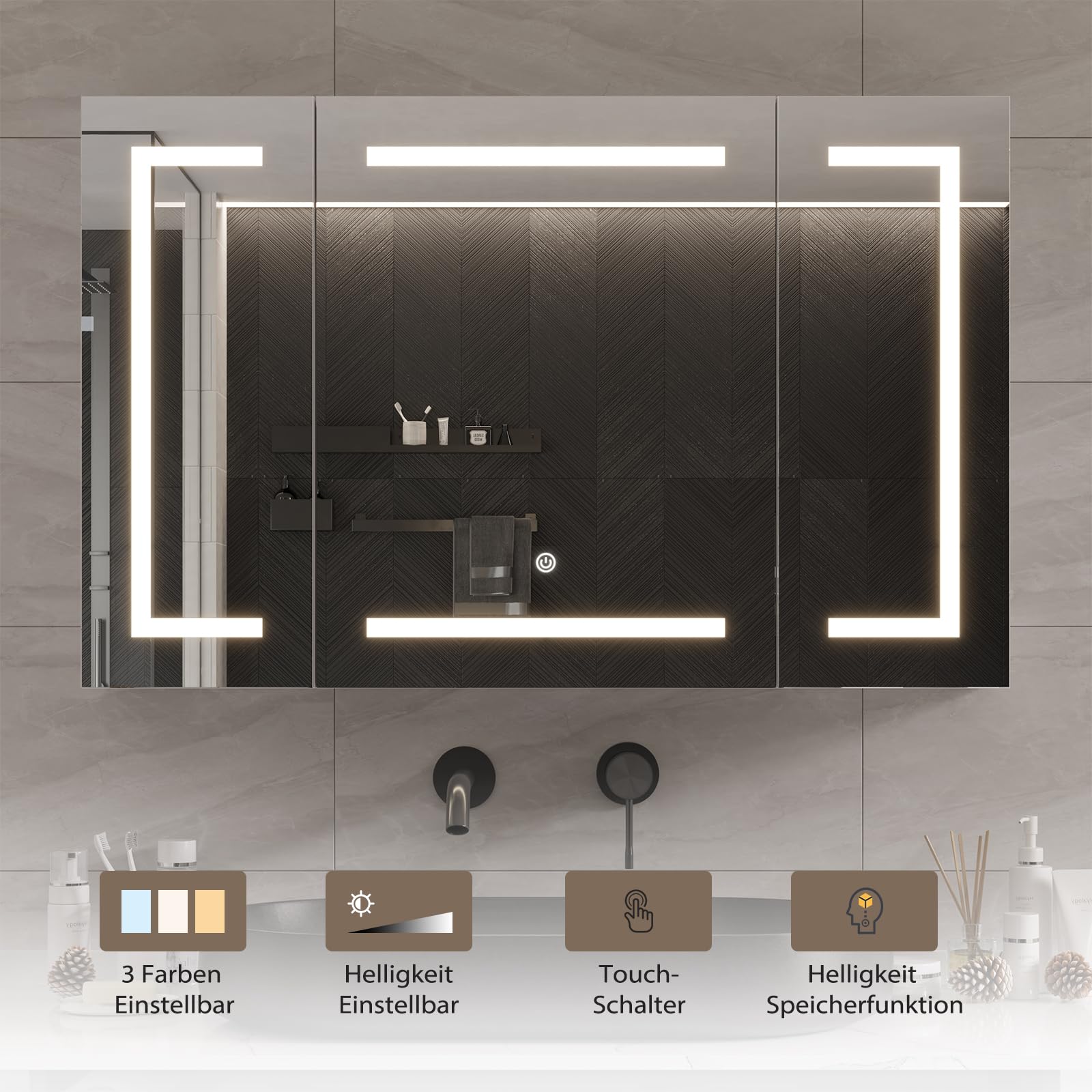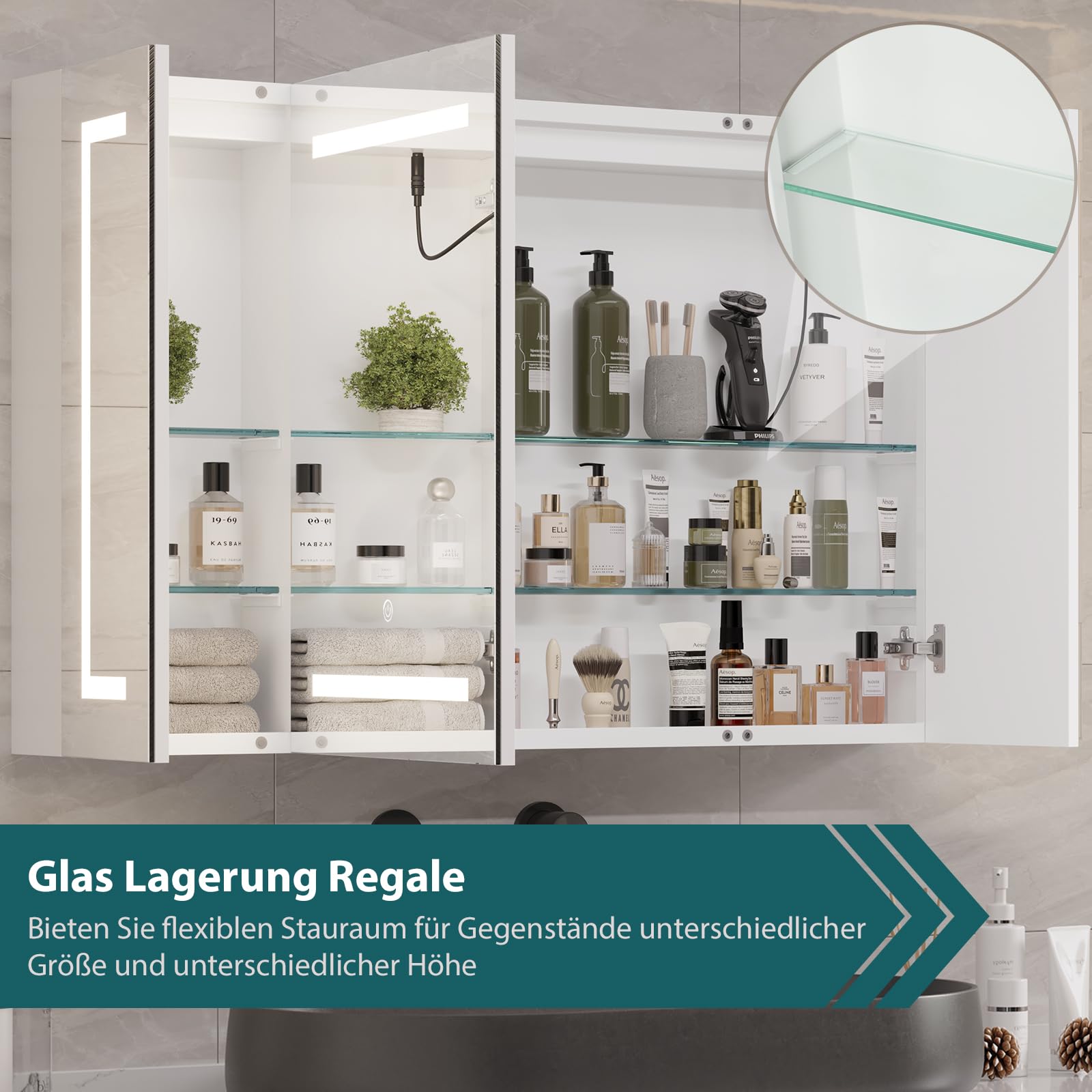 • 【Hochwertiger Metall Spiegelschrank】Hochwertige LED-Leuchten haben eine lange Lebensdauer und das Spiegelglas ist leicht zu reinigen.Es besteht aus einer Metall- und Glasoberfläche, die Oberfläche mit Lack behandelt, glatt und langlebig,sodass der spiegelschrank eine hervorragende Beständigkeit gegen Rost und Korrosion.Plus die IP44 Badezimmer Schutzstufe,dass sich der Schrank vor Feuchtigkeit sowie Wasser schützen,Sorgt perfekt für den sicheren Einsatz in feuchten Umgebungen wie Badezimmern.