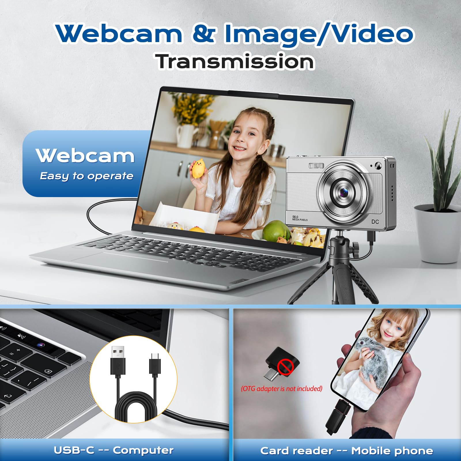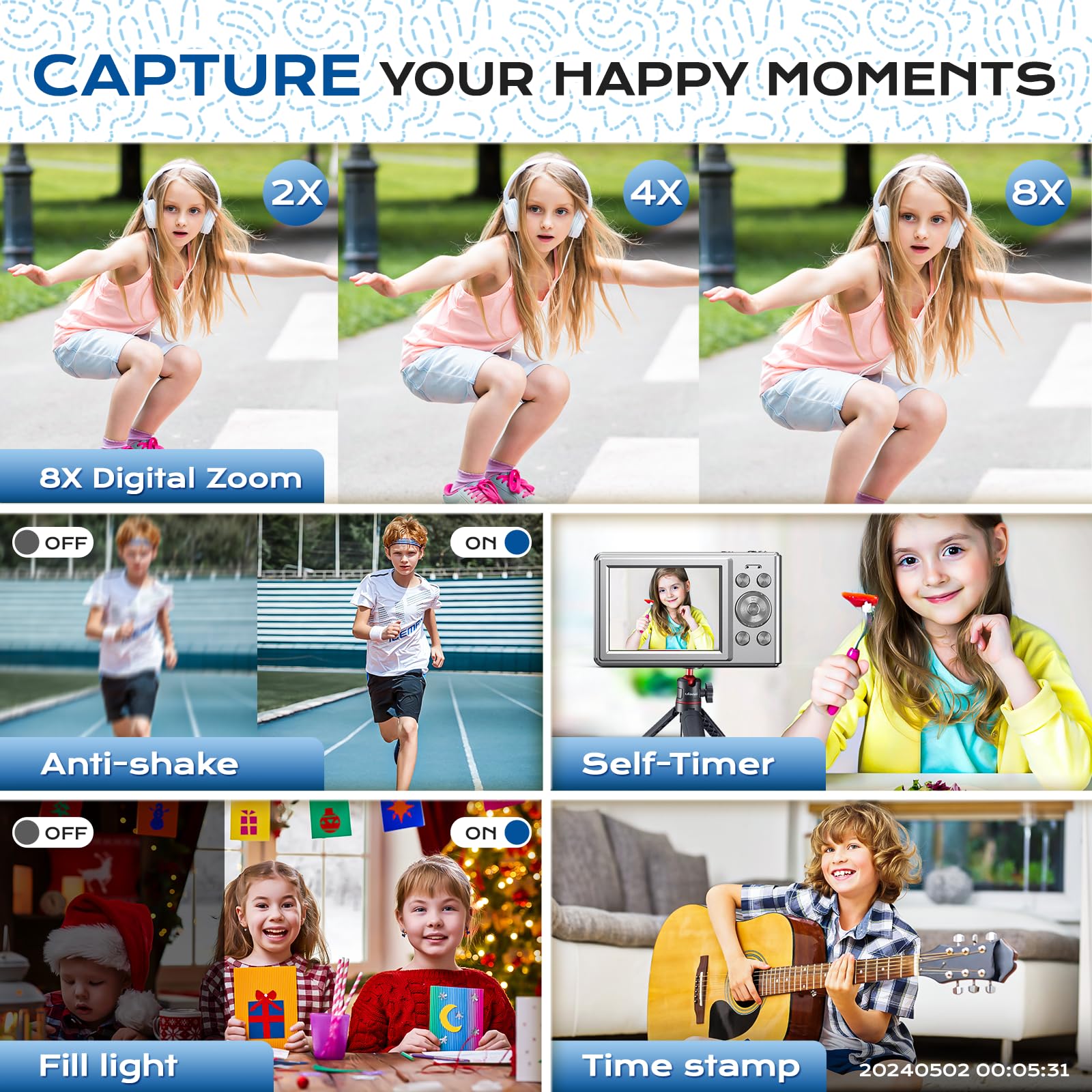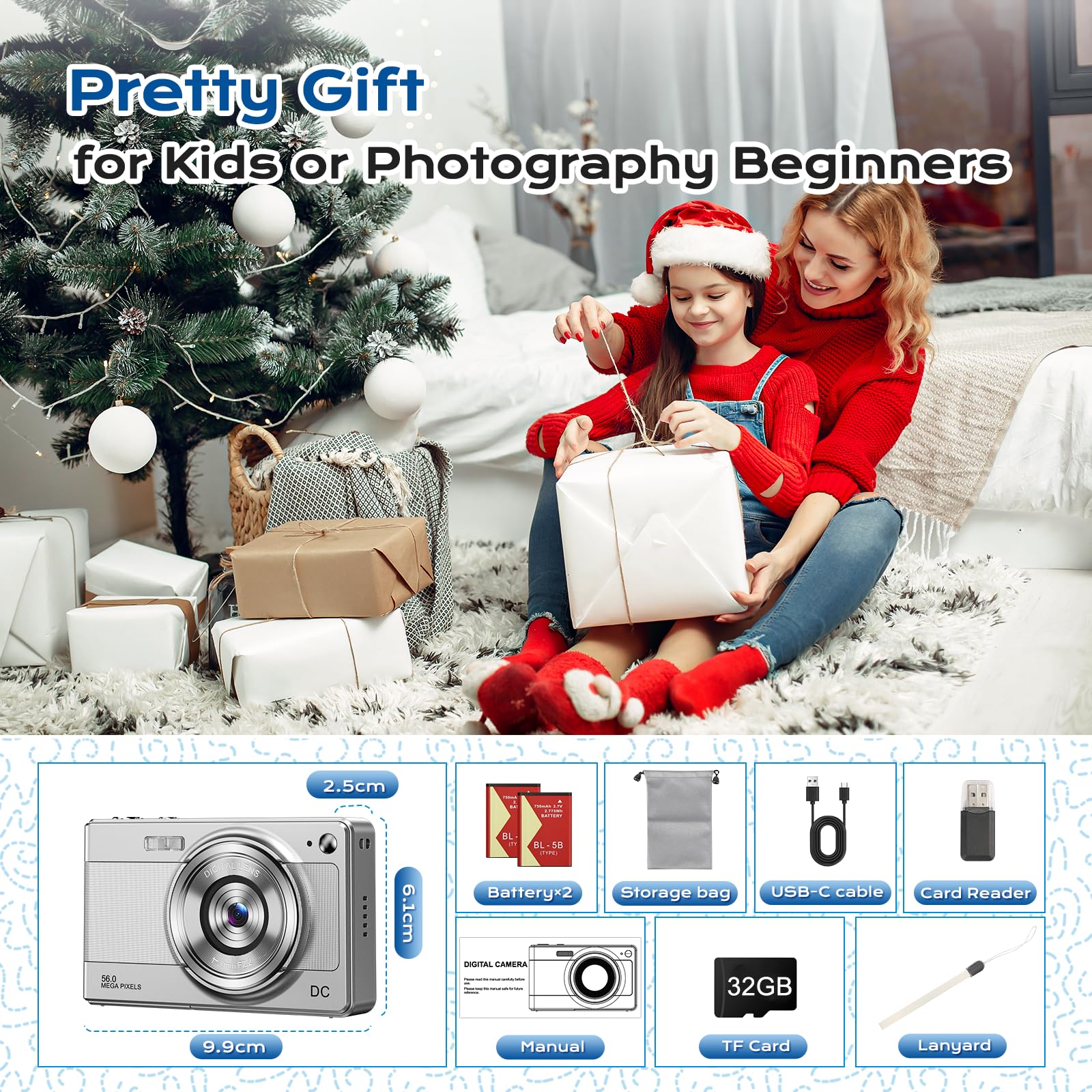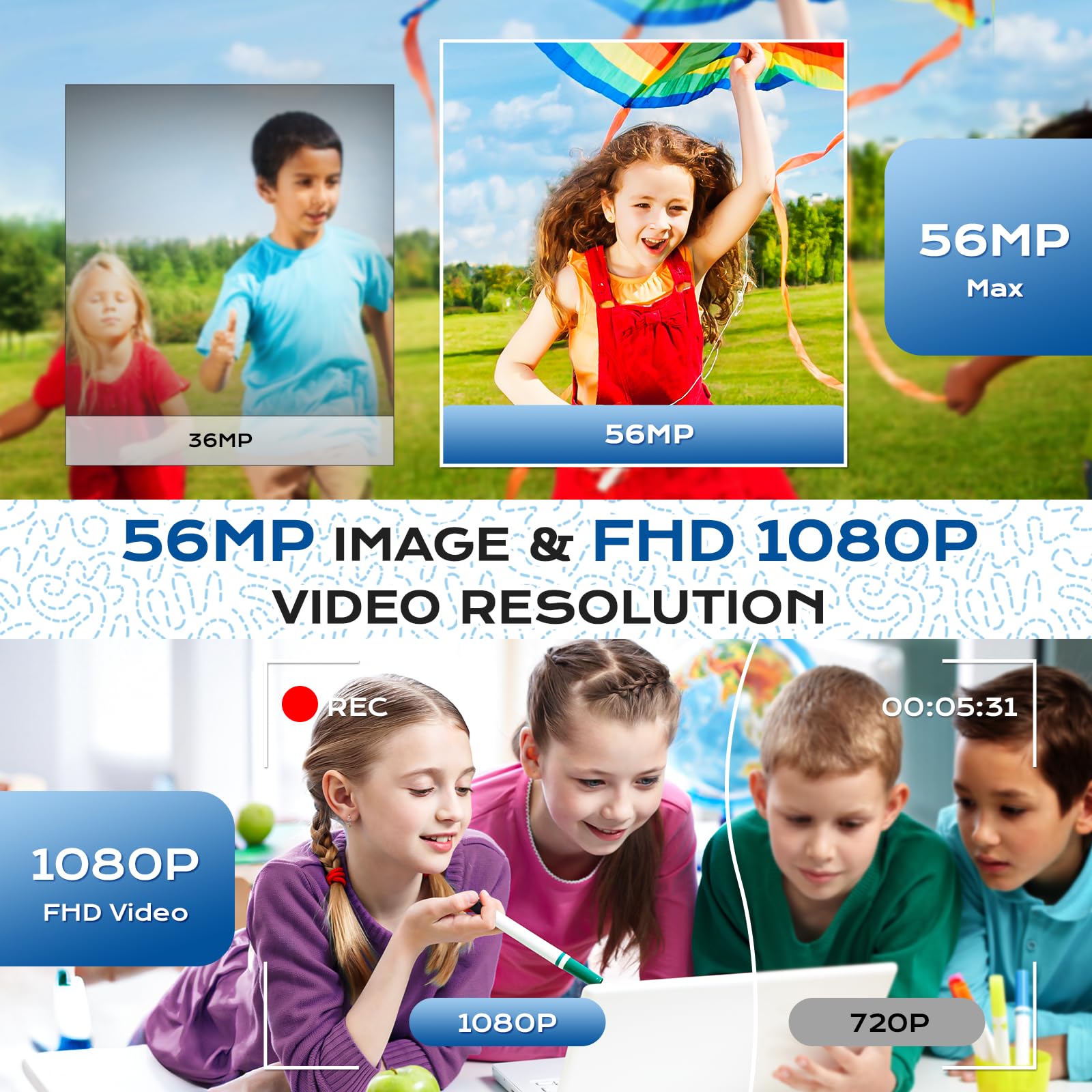 - 【Hochauflösende Bilder und Videos】: Ausgestattet mit dem neuesten CMOS-Messsystem nimmt diese Digitalkamera kinder detaillierte Bilder mit lebendigen Farben auf und unterstützt hochauflösende FHD 1080P-Videos und 56MP-Fotos, sodass Sie jeden atemberaubenden Moment festhalten können.