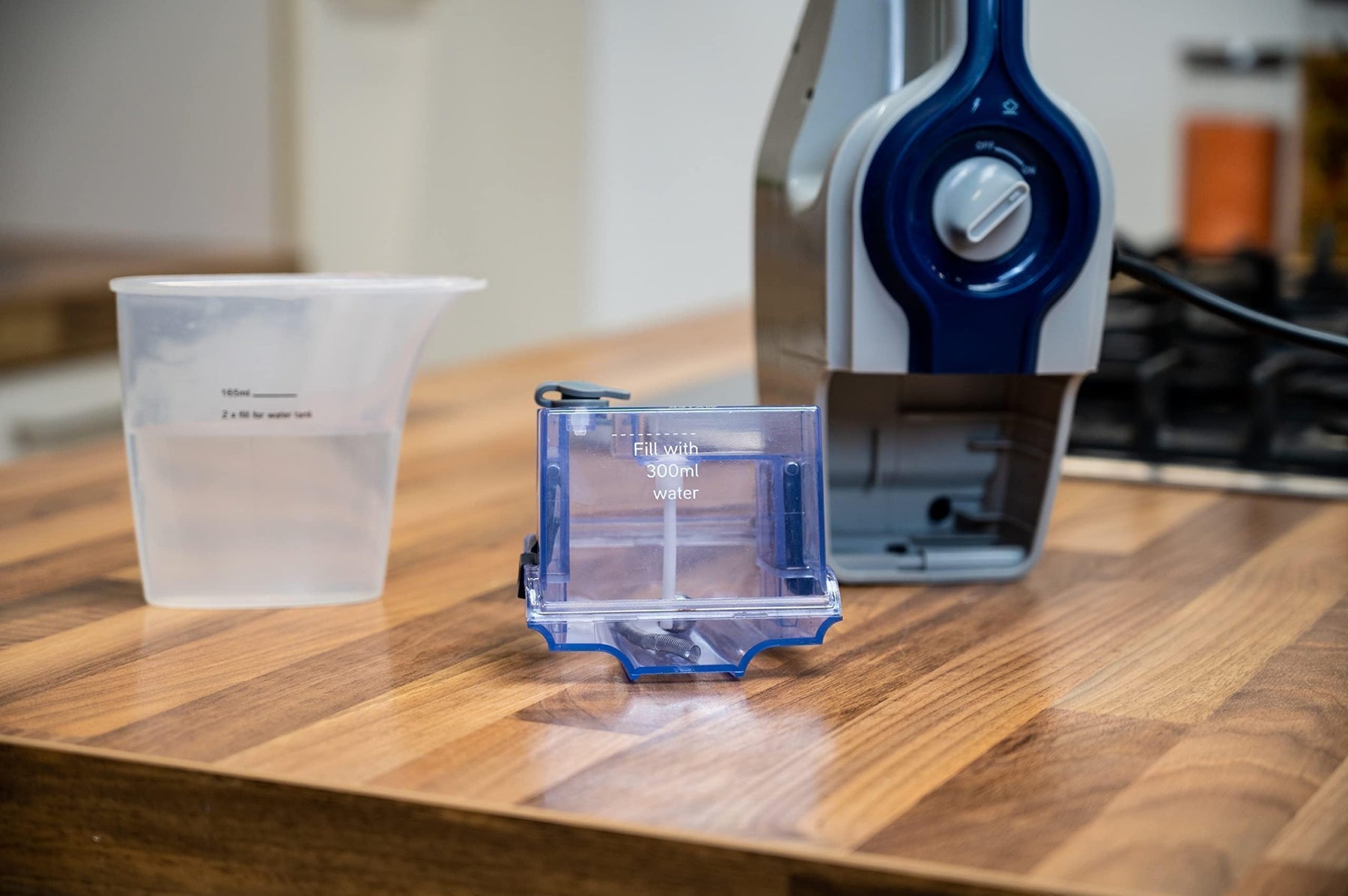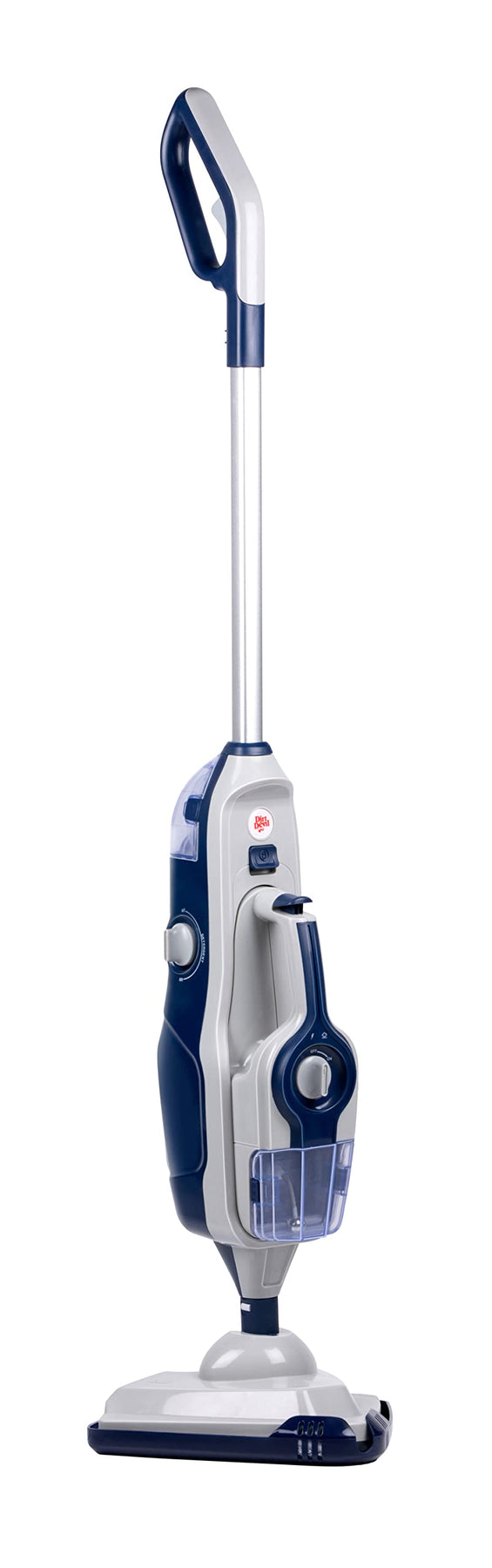 Der Dirt Devil Dampfreiniger hat einen separaten Wassertank. Um den Dampfreiniger zu benutzen, füllen Sie Wasser in den Wassertank mit einer maximalen Kapazität von 220 Millilitern, vorzugsweise destilliertes oder demineralisiertes Wasser anstelle von Leitungswasser. Schalten Sie dann den Dampfreiniger ein und warten Sie, bis die Kontrollleuchte nicht mehr blinkt. Dies dauert maximal 20 Sekunden. Drücken Sie dann die Dampftaste, um die gewünschte Dampfmenge einzustellen. Mit einem vollen Wassertank können Sie den Bodendampfer 20 Minuten am Stück benutzen. Neben dem Wassertank verfügt der Dampfreiniger auch über einen 150-Milliliter-Reinigungsmittelbehälter. In diesen Behälter können Sie ganz einfach Reinigungsmittel einfüllen, um Oberflächen noch leichter zu reinigen. Sie möchten kein Reinigungsmittel für Ihre Böden verwenden? Schalten Sie den Reinigungsmittelschalter am Dampfreiniger auf OFF.