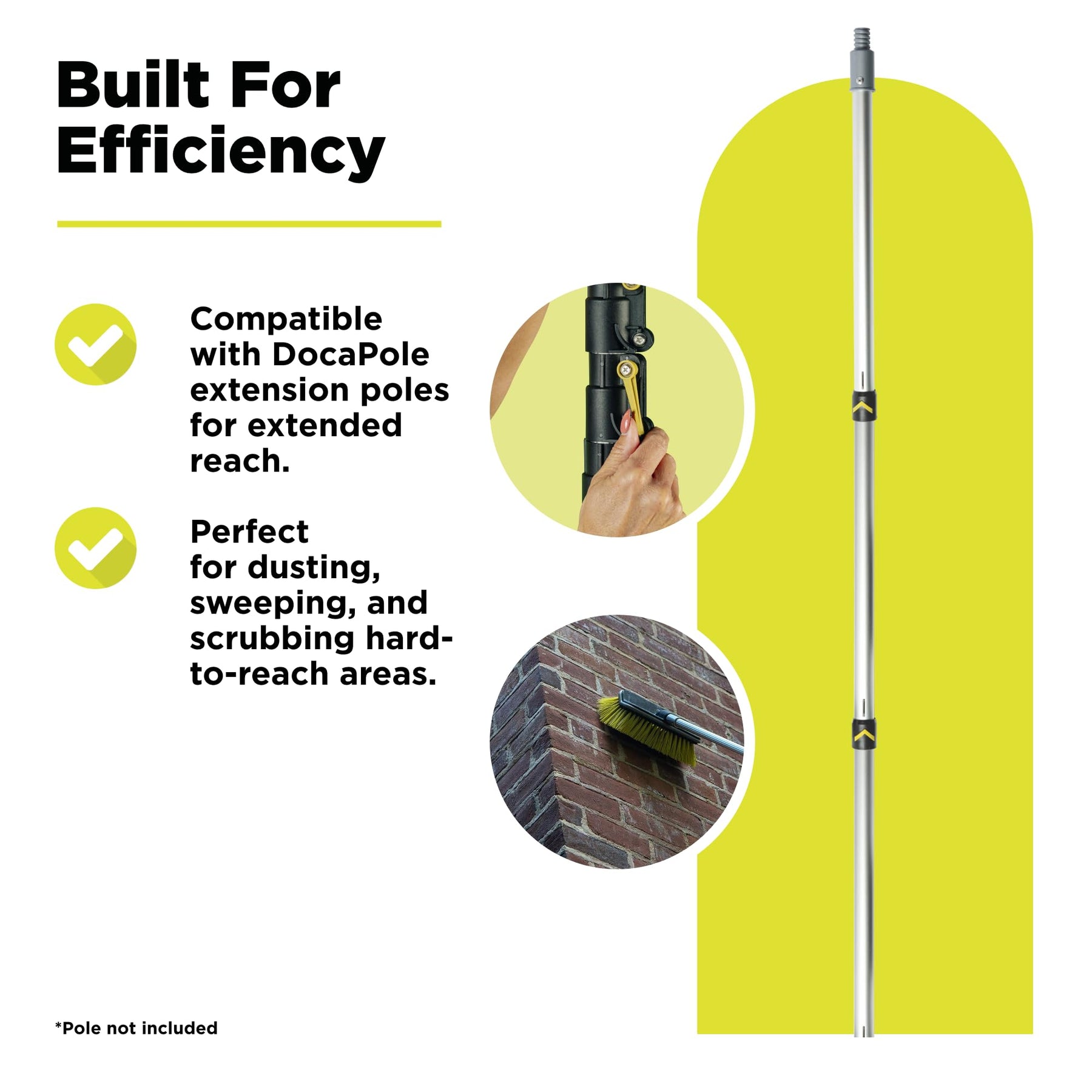 • Kombinieren Sie es mit einer Docapole-Verlängerungsstange – die Bürste ist mit allen Standard-Verlängerungsstangen mit Gewinde kompatibel. Mit dem DocaPole-Bürstenaufsatz können Sie den Weg reinigen, Autos schrubben, große Wohnmobile, Bootsseiten und hohe Ecken entstauben. Mit dem Stab kann die Bürste auch als Besen oder Oberbesen mit langem Stiel fungieren. Mit einer 3,5 m, 7 m oder 9,1 m langen DocaPole-Verlängerungsstange erhalten Sie die ultimative Bürste mit großer Reichweite