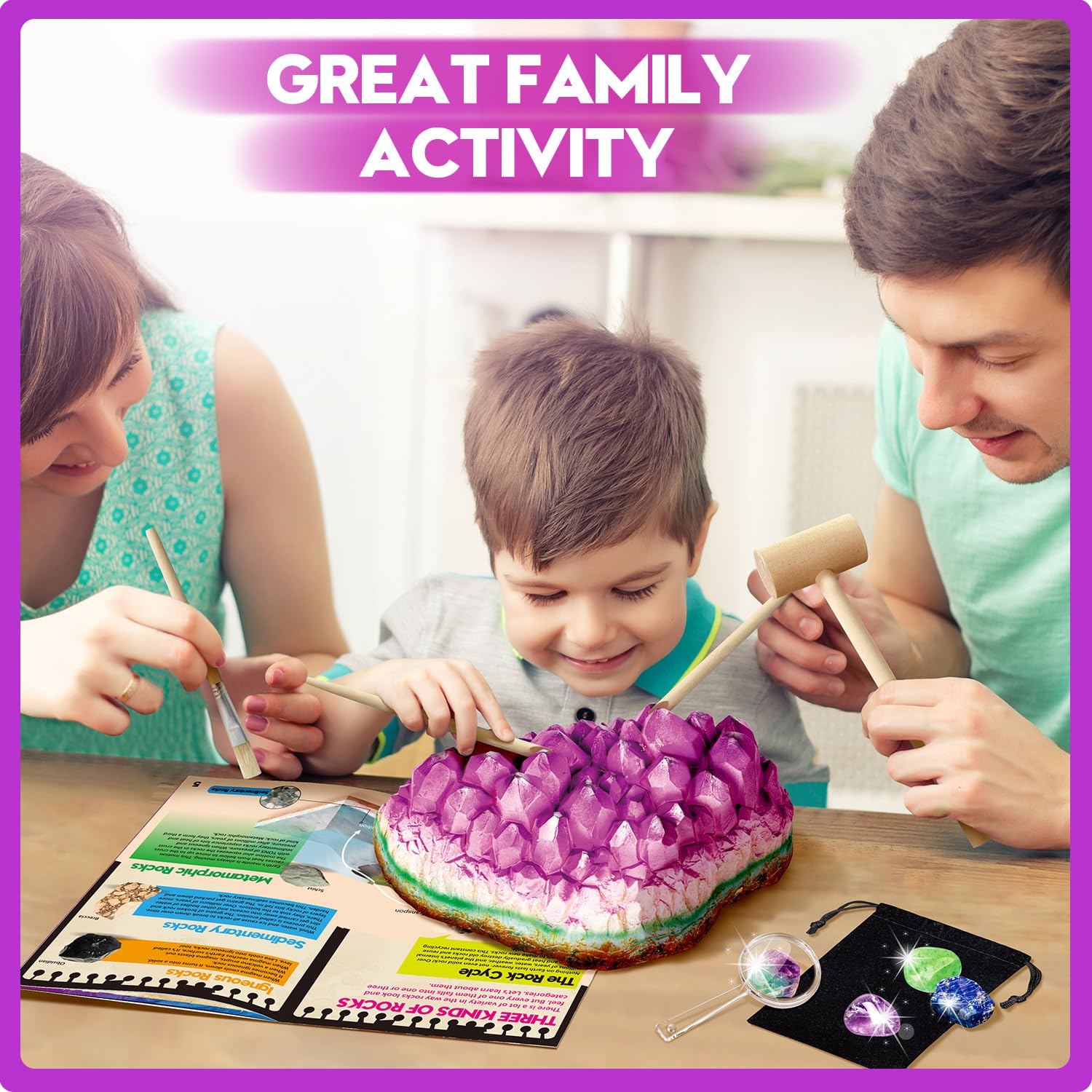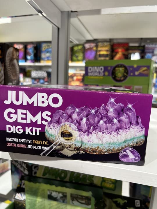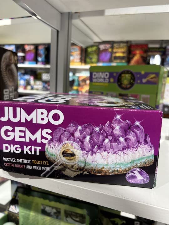 • JUMBO GEMS DIG KIT: Entdecken Sie die Faszination von Edelsteinen! Graben Sie einen massiven Amethystblock aus, um 18 strahlende Edelsteinschätze freizulegen. Tauchen Sie ein in ein lebendiges Lernerlebnis mit einem anschaulichen, farbigen Leitfaden, der die Geheimnisse der Edelsteinbildung und -gewinnung enthüllt und jungen Entdeckern dabei hilft, ihre neu entdeckten Exemplare zu identifizieren. Bei diesem Kit handelt es sich um ein pädagogisches Wissenschaftskit für Kinder.