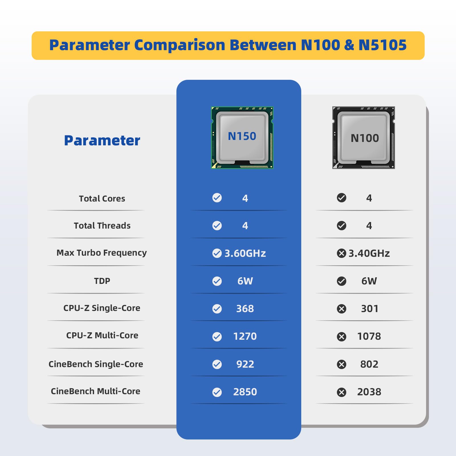 - 🚀【Neuer 2025 Gen Intel N150 Prozessor】DreamQuest ist mit dem neuen 12. Gen Intel Celeron N150 Prozessor (4C/4T, 6M Cache, bis zu 3.6GHz) und Intel UHD Graphics 600 ausgestattet. Starke Leistung bietet unglaubliche Reaktionsfähigkeit, die Leistung von N100 ist 35% höher als N5105, aber auch schneller und niedriger Stromverbrauch als N5095 von 2.5GHz, dieser Stromverbrauch ist 6W, schnellere N95 CPU kann Ihr Business-Büro, Home-Entertainment, Online-Lernen, andere Bedürfnisse erfüllen.