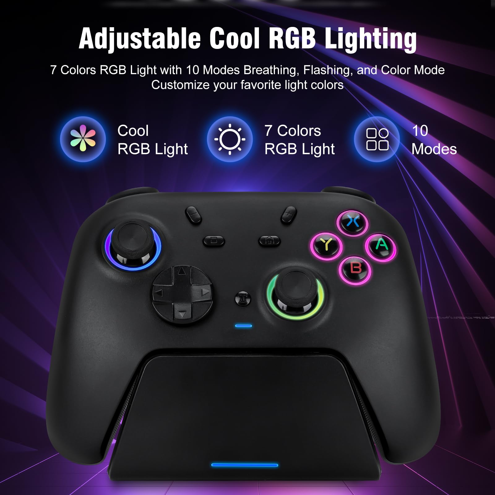DuLingKer PC Controller mit Ladestation, Wireless Switch Controller für Switch/PC Windows/Steam mit Hall Effekt Trigger/Joystick(Kein Drift), RGB Licht, M1/M2 Taste, Game Controller für PC/Switch