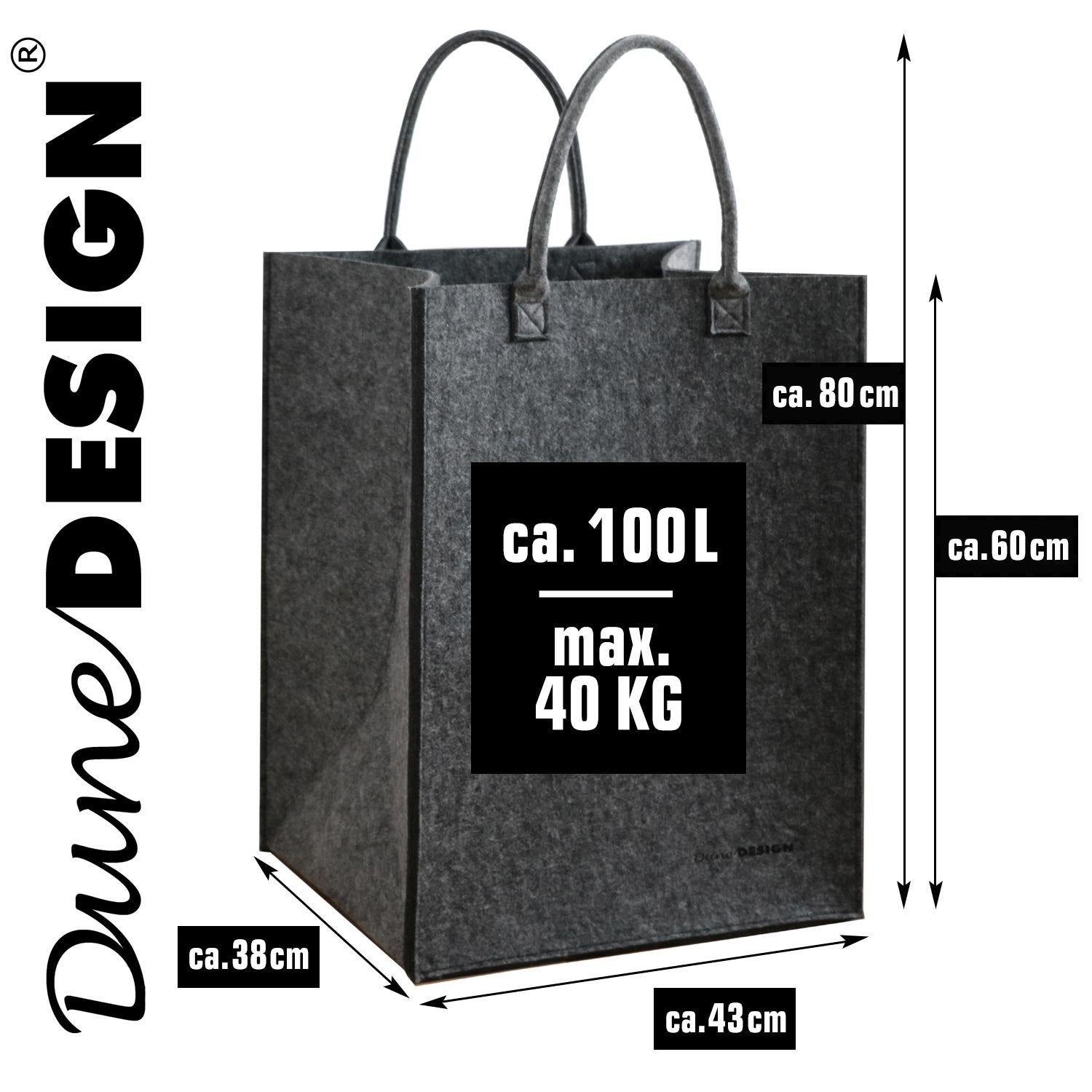 - 5 MM (!) FILZ - BELASTBAR BIS 40 KG - XL Wäschesack, ca. 43 x 38 x 60 cm - genug Platz für eine ganze Woche Schmutzwäsche. Die Wäschetasche ist so strapazierfähig, Du kannst sie sogar über den Boden ziehen.