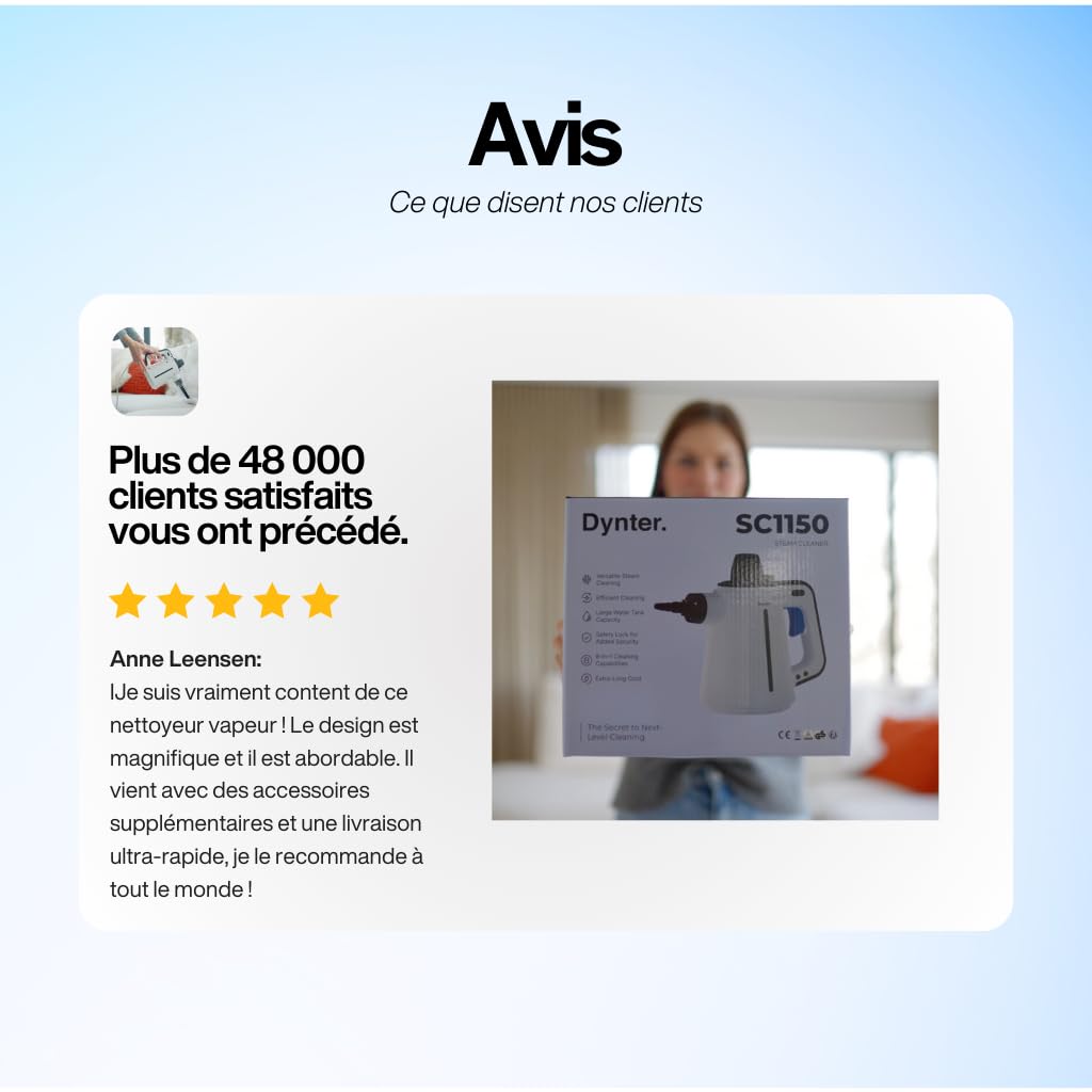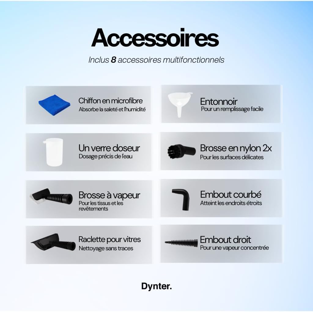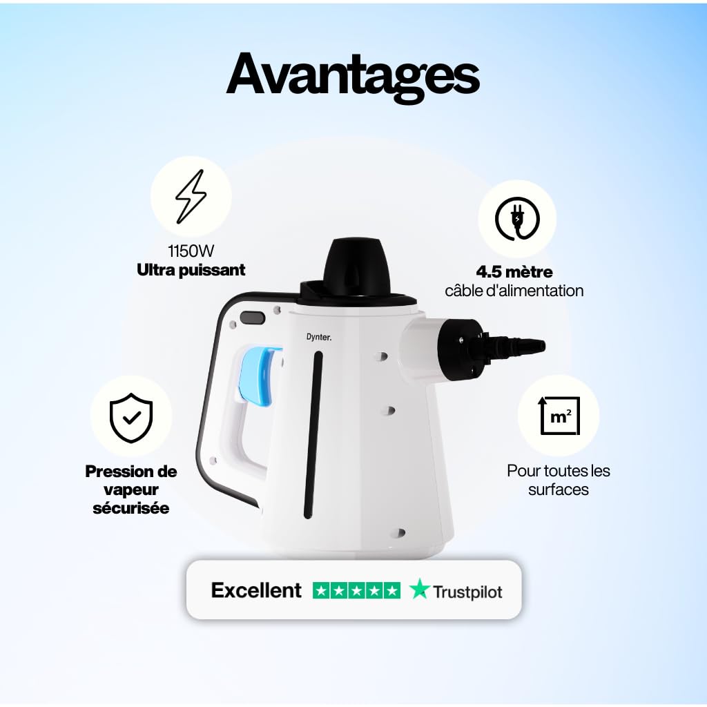 Dynter. SC1105 Hochdruck-Dampfreiniger – 1150 Watt Leistung, 3.5 Bar Druck, 15 Min. Nutzungsdauer | Inkl. Zubehörset für Küche, Bad & Böden | Chemikalienfreie Reinigung mit Leitungswasser